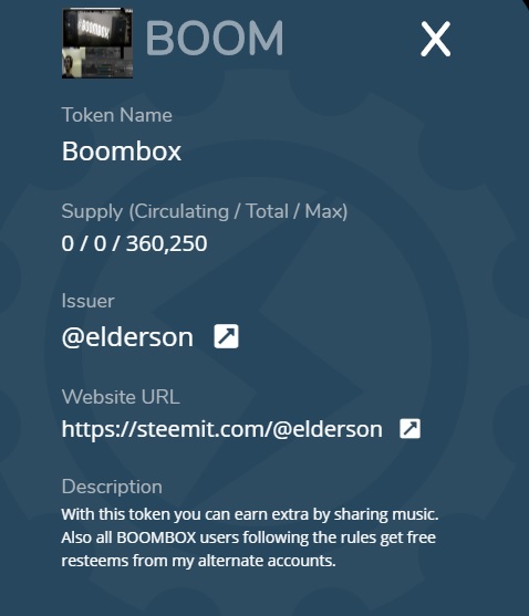 My burn posts helped with about 10% of the fees needed to start this project. So thank you! I don't know much about how this works but I'm happy to get started. I think the more we use the tags, the more is mined. So feel free to use "Boombox" when sharing the songs you love! We might be able to build an economy around it. After I have my first BOOM token in my Steem Engine wallet, the free resteems will start pouring in. But remember, it will only be up to 20 a day. And good thing resteems can't happen twice. Because if you don't get a resteem by day one, there is a good chance by day two or three you'll get one! I wish us all luck. Happy Steeming