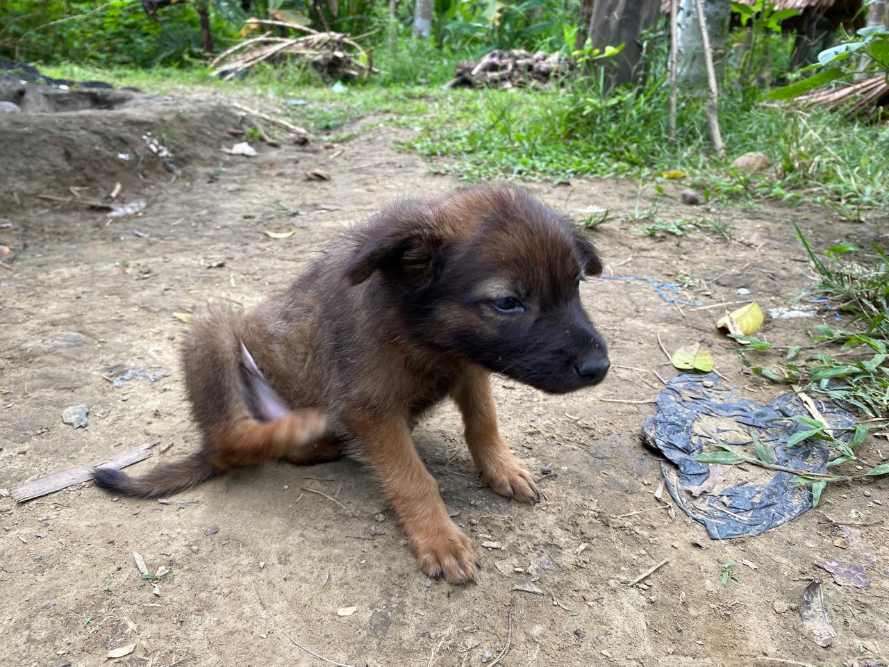 When I was still daydreaming at that time I saw a small hut and it turned out that there were dogs kept and I saw a puppy that had very interesting fur so I captured some of its pictures.