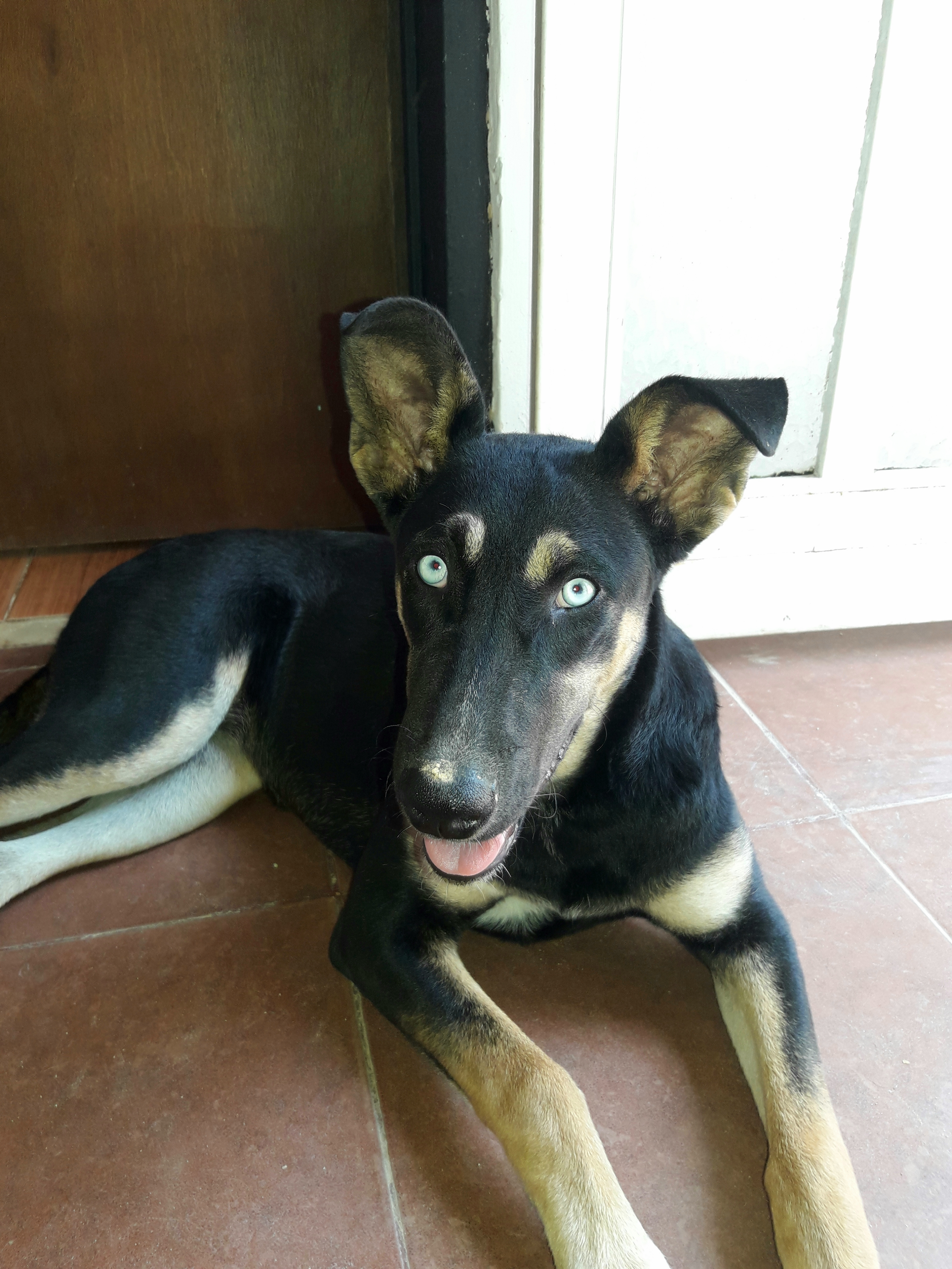 Para empezar mí perrita llamada Alaska tiene 5 meses, es una mezcla de Pastor Alemán con Lobo Siberiano, tiene los ojos azules de Lobo y el pelaje negro con patas marrones de Pastor Alemán. A mí parecer es muy linda, me la dieron 9 días antes de mí cumpleaños el 12 de Enero estaba súper chiquita ahí solo tenía un mes era muy tierna y no se portaba mal jajaja.