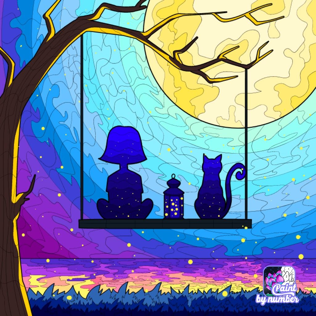 A beautiful night with the cat.cryptoyankee (60)in #steemexclusive • 4 years ago Is it look like a dream world? I wish I could be there. Coloring App used for coloring: Paint by number Android Mobile app Thanks #art #digitalart #color #app #painting