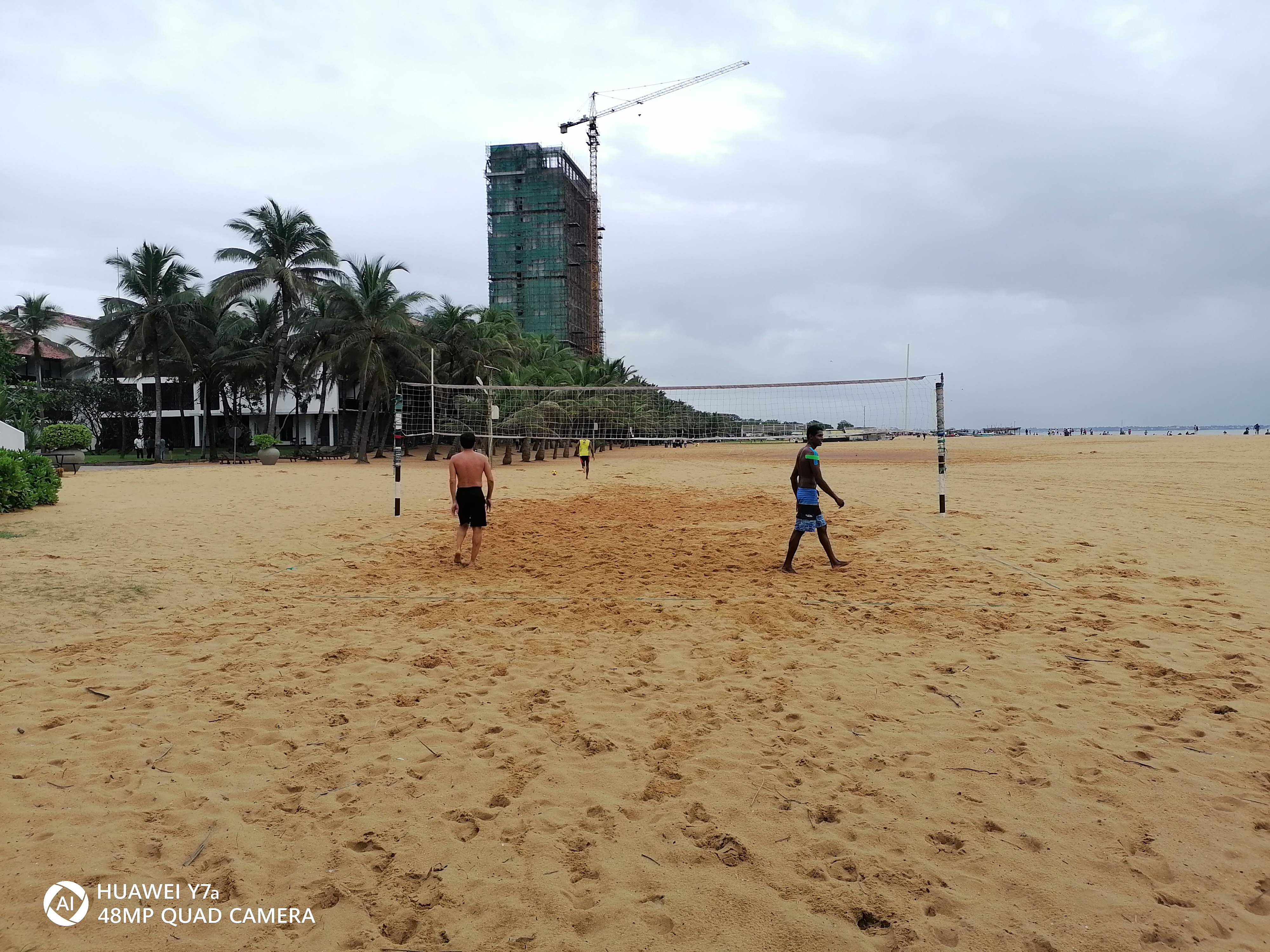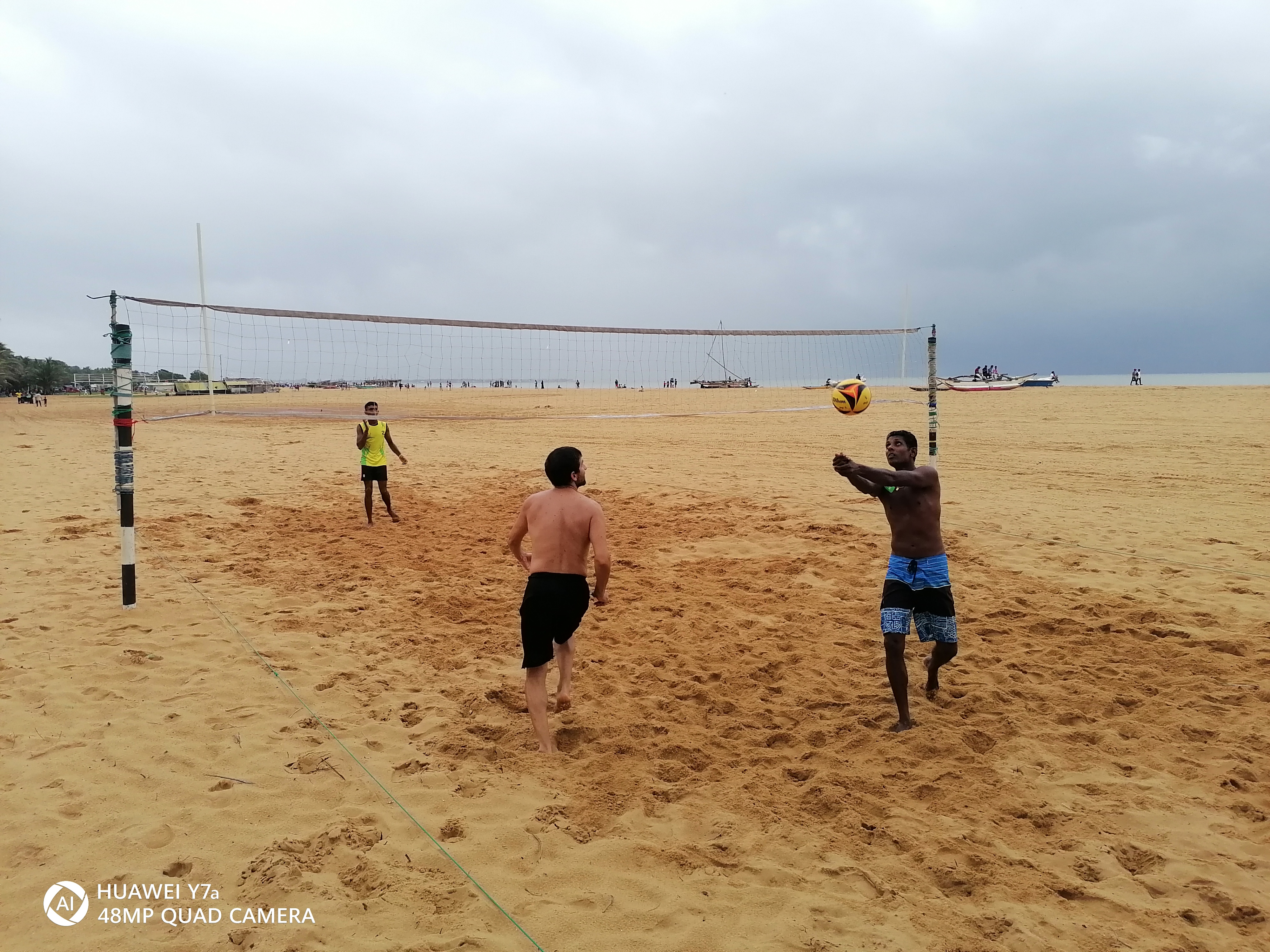 People get many benefits from the sea as well as from the beach. There are so many benefits that it is difficult to mention how many there are. One day when I went to Brown's Beach in Negombo, this is a scene I was able to see. They are playing beach volleyball. They are playing that game very happily. Accordingly, the seashore is very useful for sports.