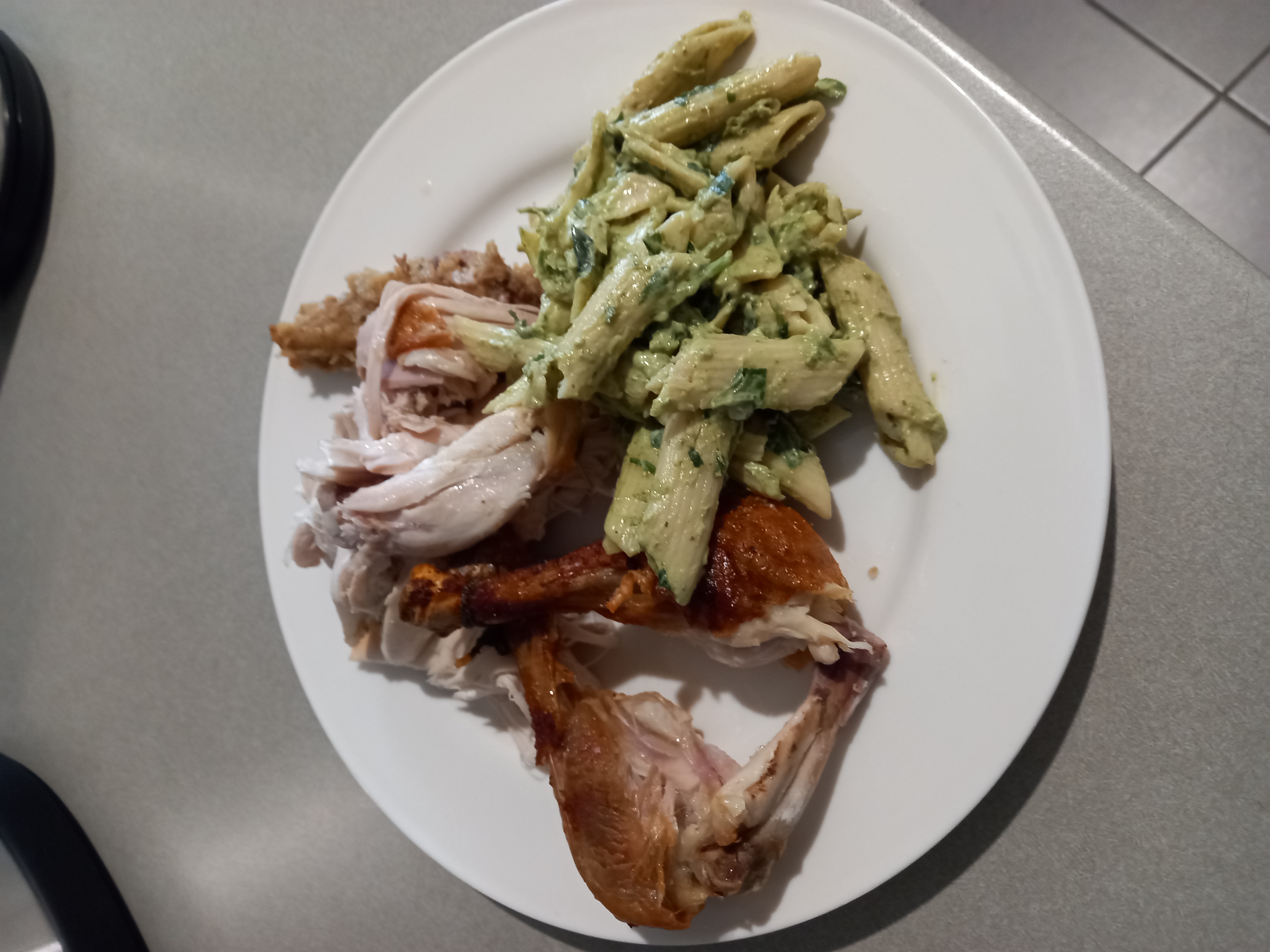 Last night for dinner i got a Roast Chicken from the Supermarket and some Basil pesto pasta, had the rest for dinner tonight which was nice after a long day.