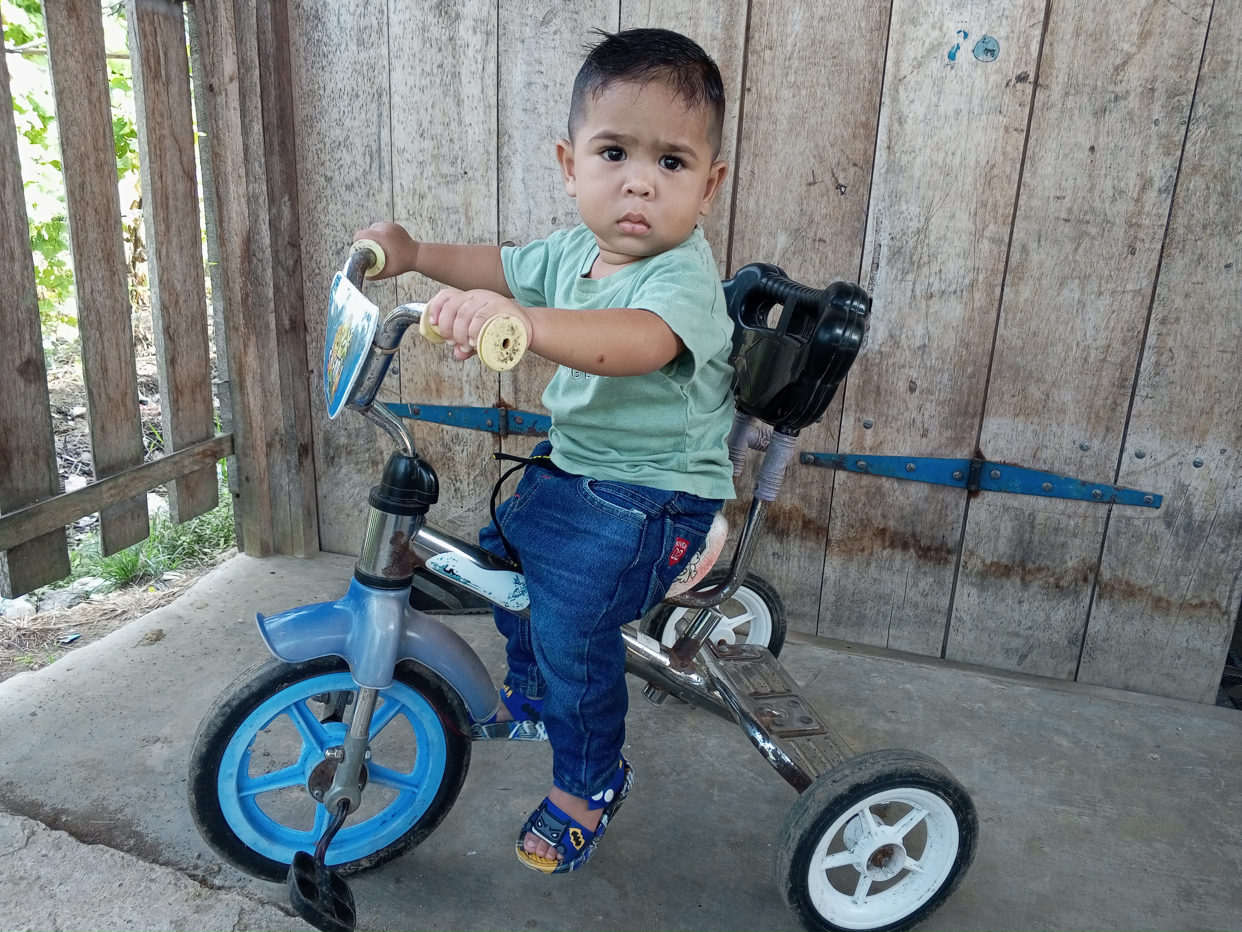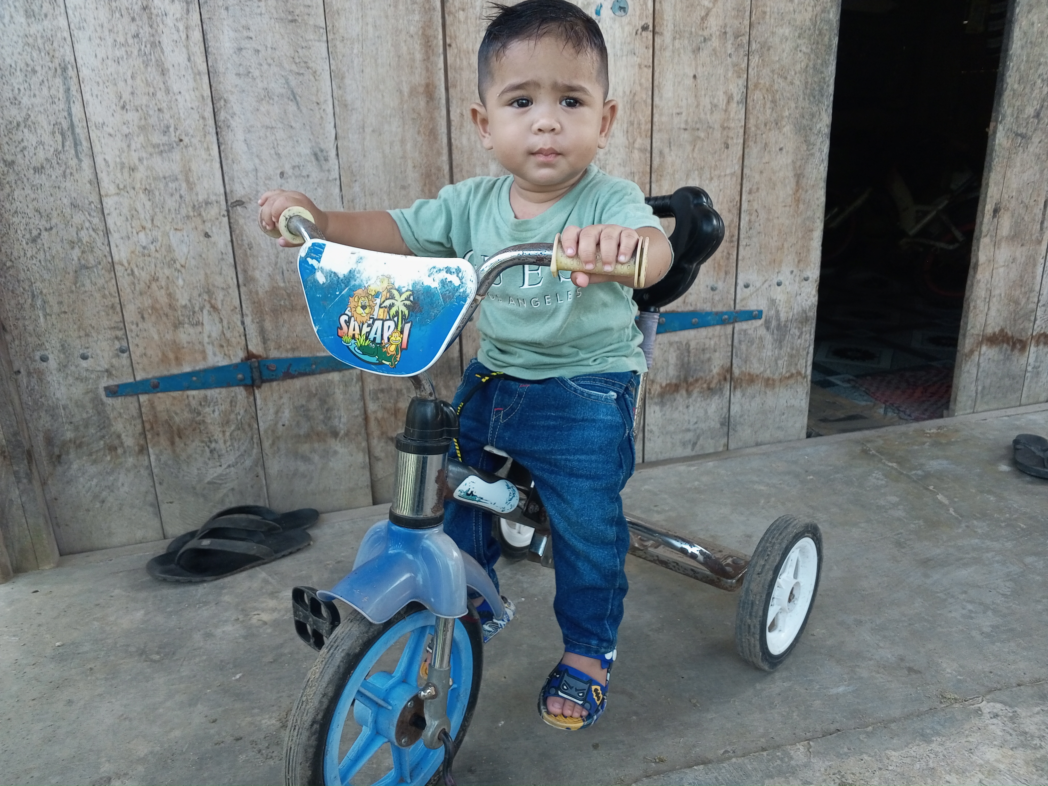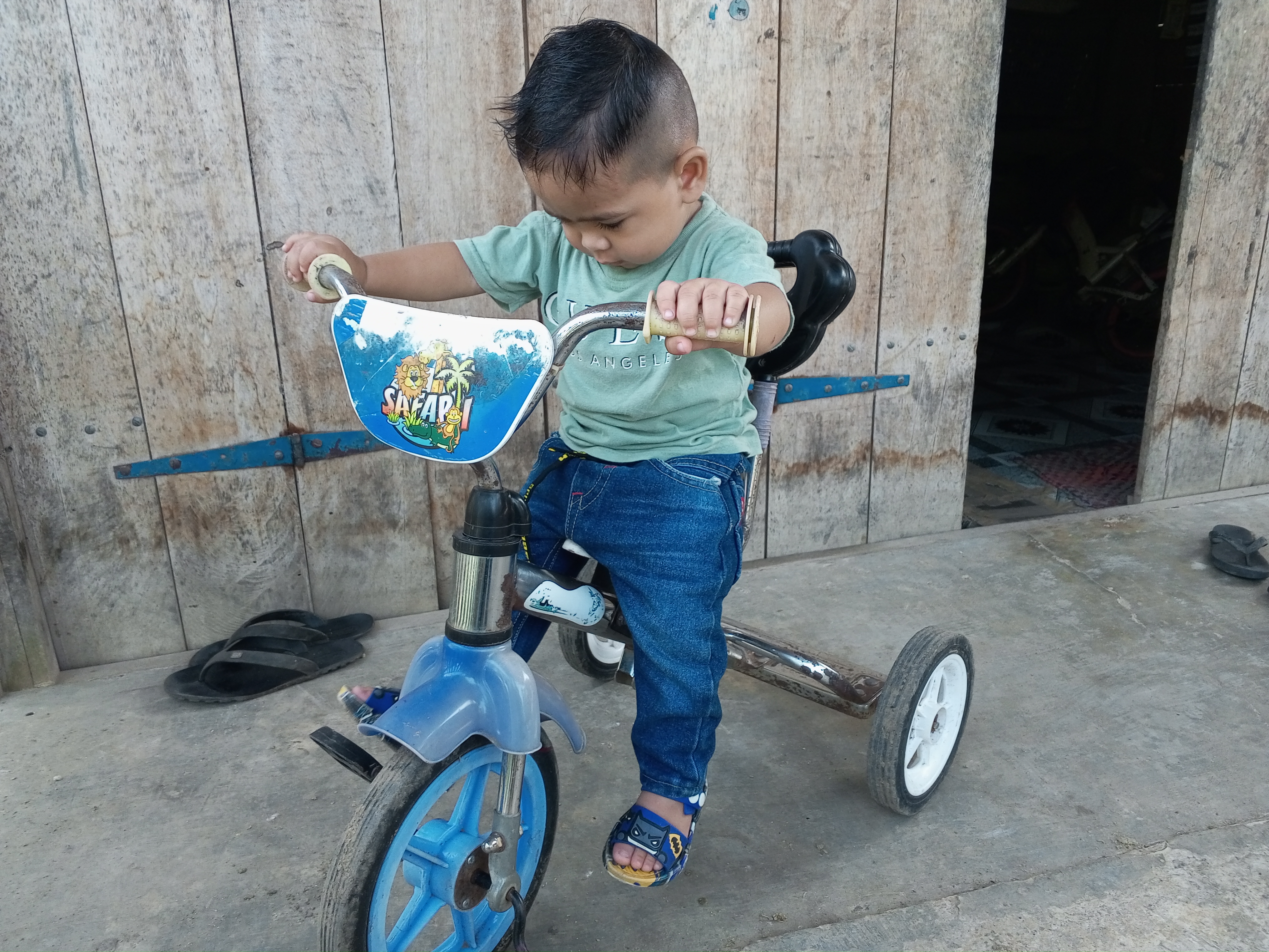 Hari ini sikecil kami ingin bermain sepeda tua yang sudah menjadi sepeda favoritnya, dulu sepeda ini di gunakan oleh abangnya dan kini sepenuhnya ia berkuasa semenjak siabang udah besar. Semenjak ia bisa bersepeda ia sering menghabiskan waktu dengan permainan barunya yaitu bersepeda. Saya melihat betapa bahagianya, bermain dan terus bermain yang terlintas di benaknya.