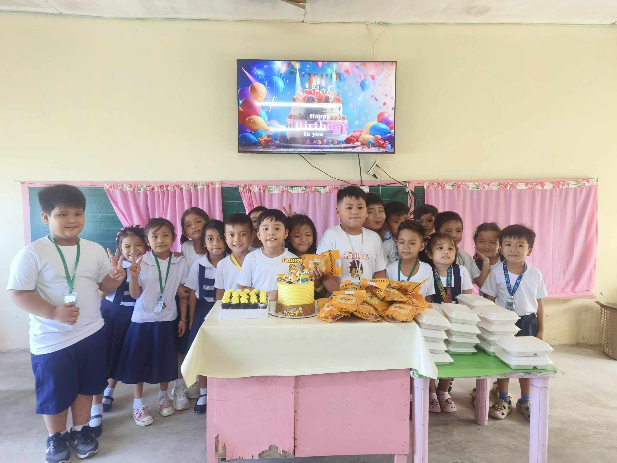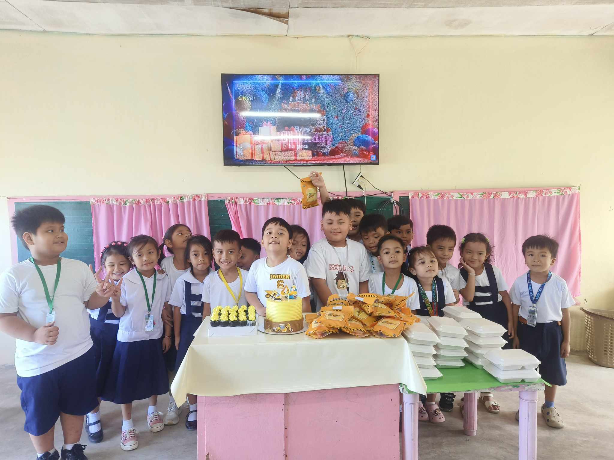 Last week Ria was so happy because his classmate surprised them by bringing it's birthday celebration inside their room. I also experience having a generous classmate. It was really fun when suddenly a cake and other stuff knocked on the door. I want to imagine Ria's face yesterday. Their teacher send the pictures to our group chat.