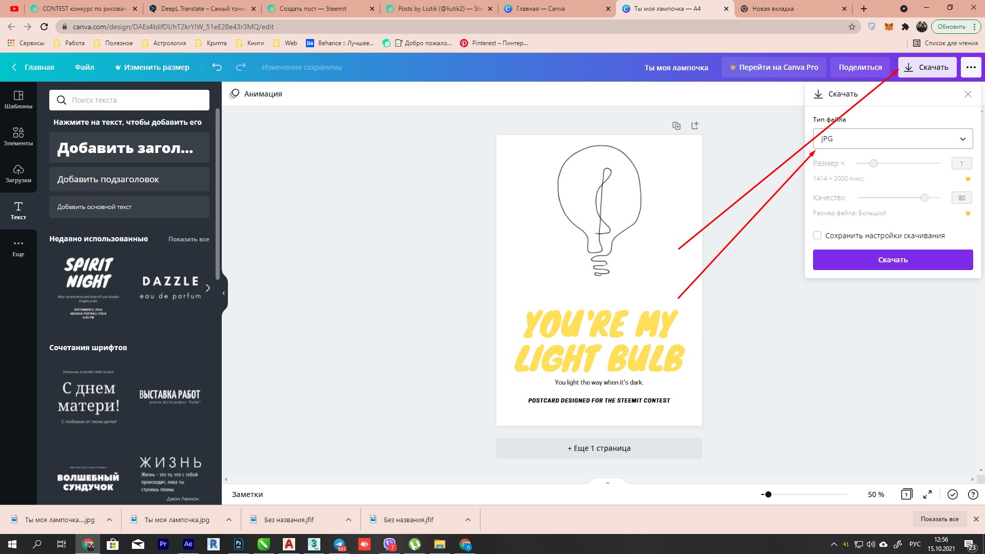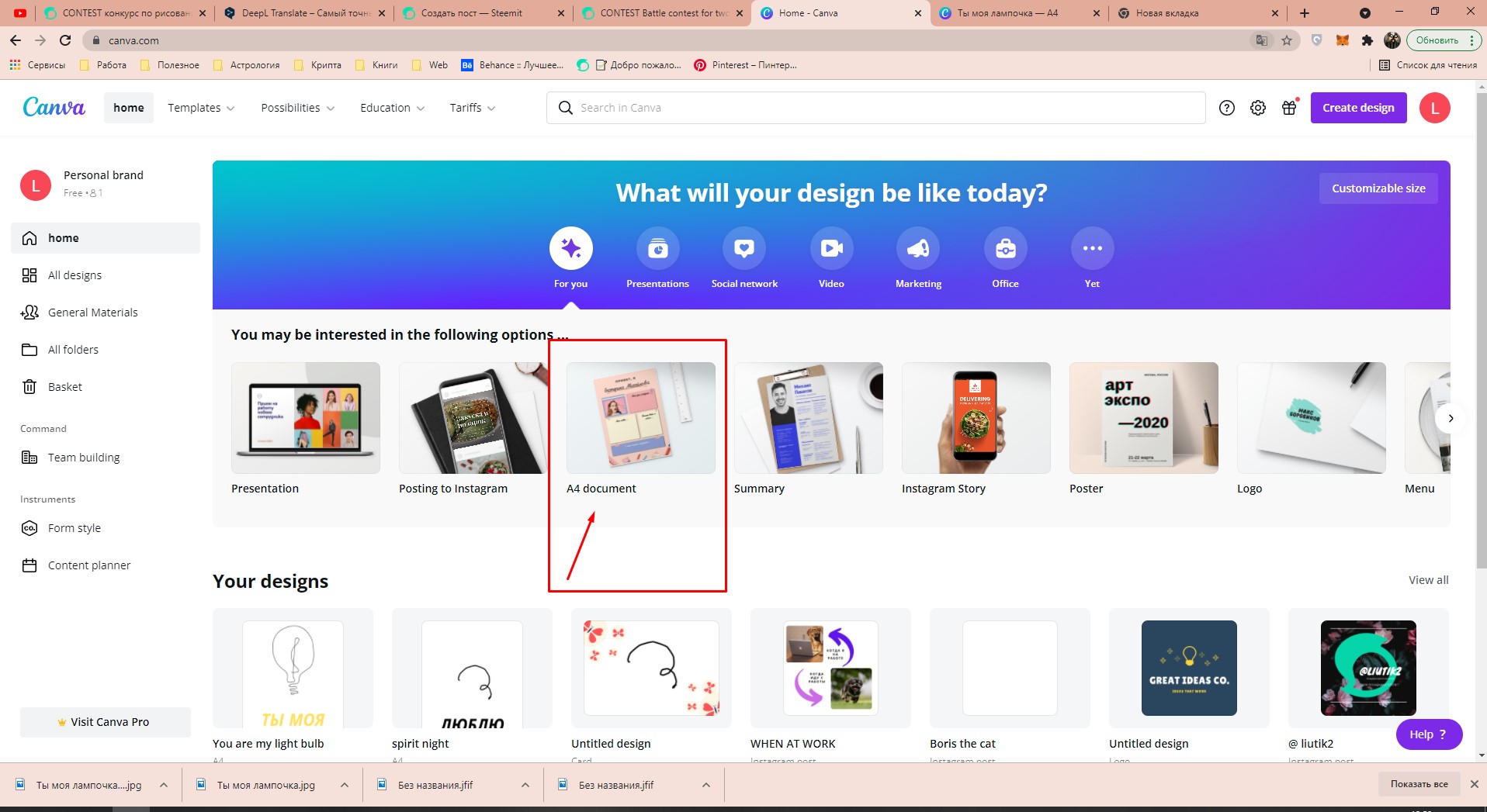 Now we go to the editor https://www.canva.com/,где you can substitute text for your greeting card.