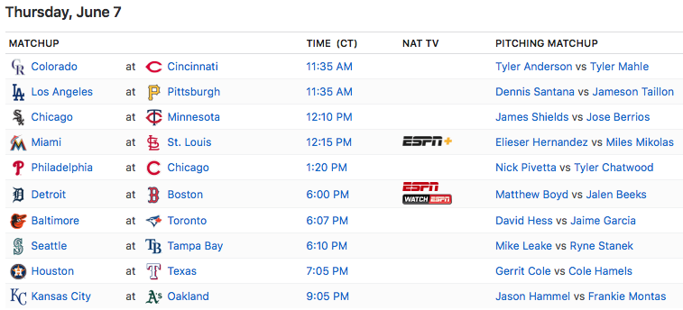 Welcome to the Daily MLB Fantasy contest: 6/7/18