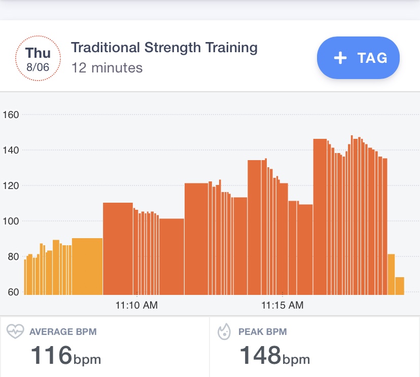 The workout itself felt great. I few less deadlifts than the last time. I got in 30 bent rows, but more of them were partial than the last time.