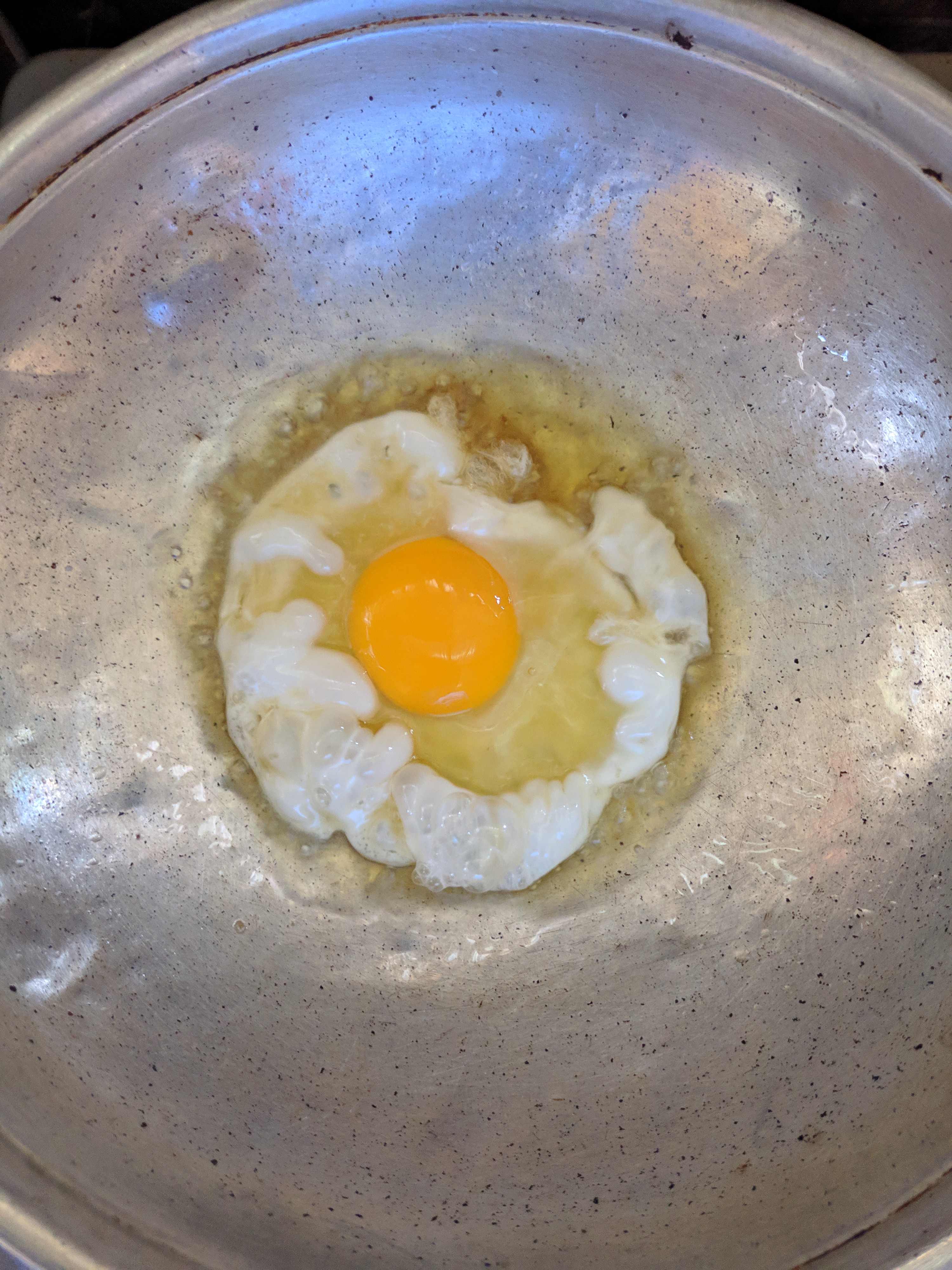 Goreng telur sesuai selera bisa di ceplok ataupun didadar.