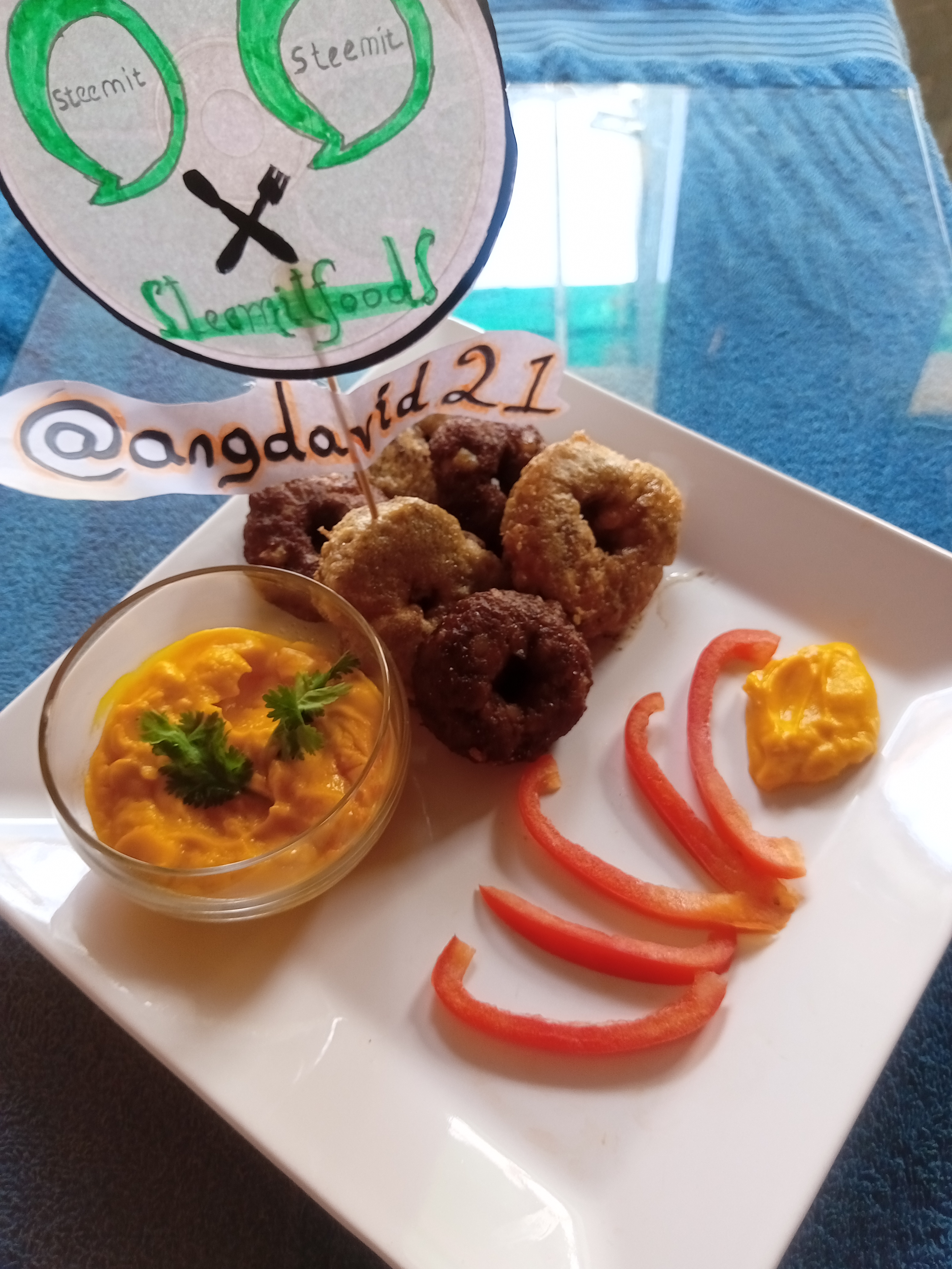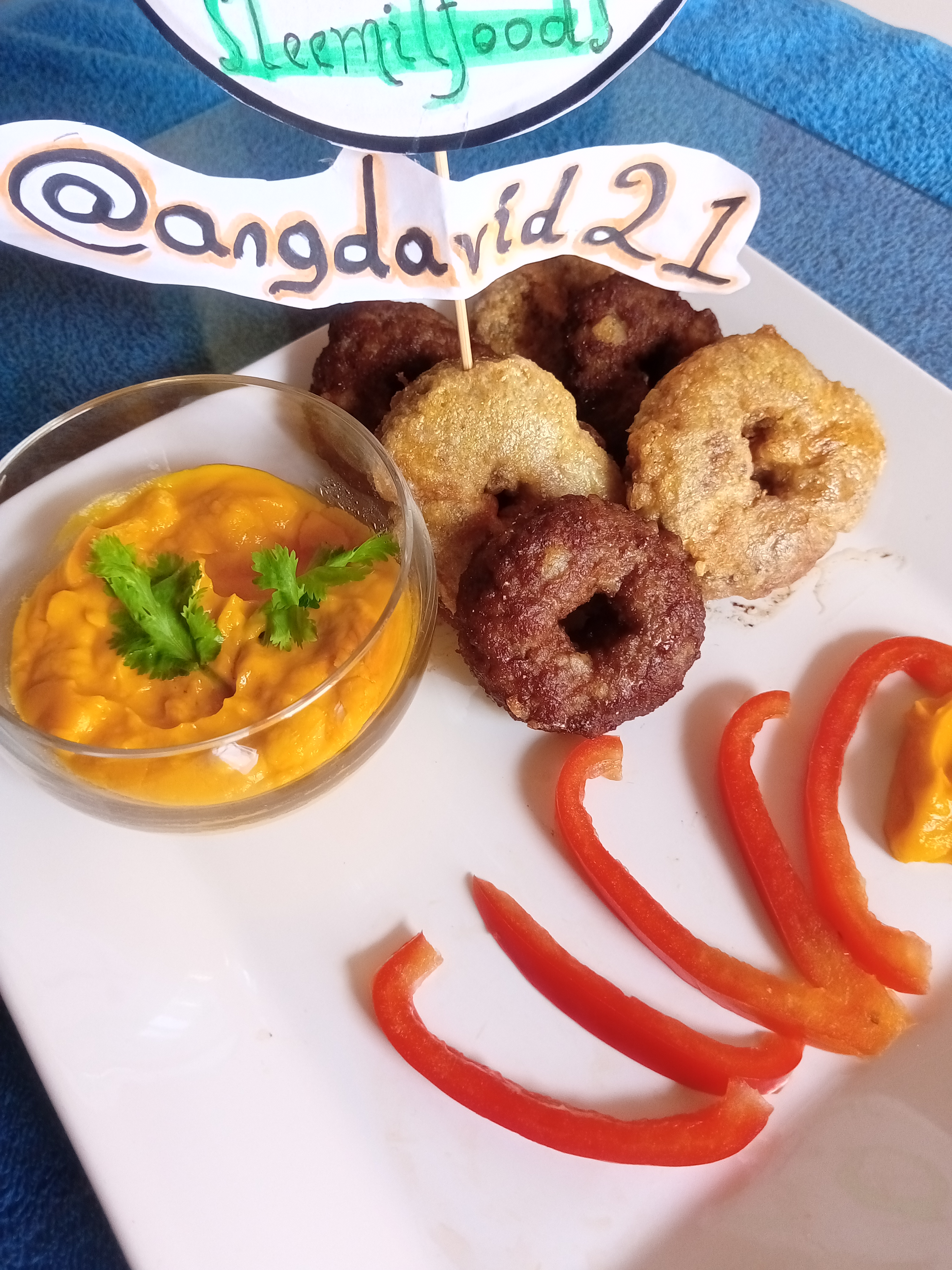 Pasado los 30 min en el refrigerador procedemos a empanizar con huevo y harina y la llevamos a freír a fuego lento para que se nos cocine bien, eso me tomo al rededor de 15 min. Luego de que las roscas estén listas ya solo nos queda servir y degustar este maravilloso plato, en este caso yo las acompañe con una salsa casera de zanahoria y pasta