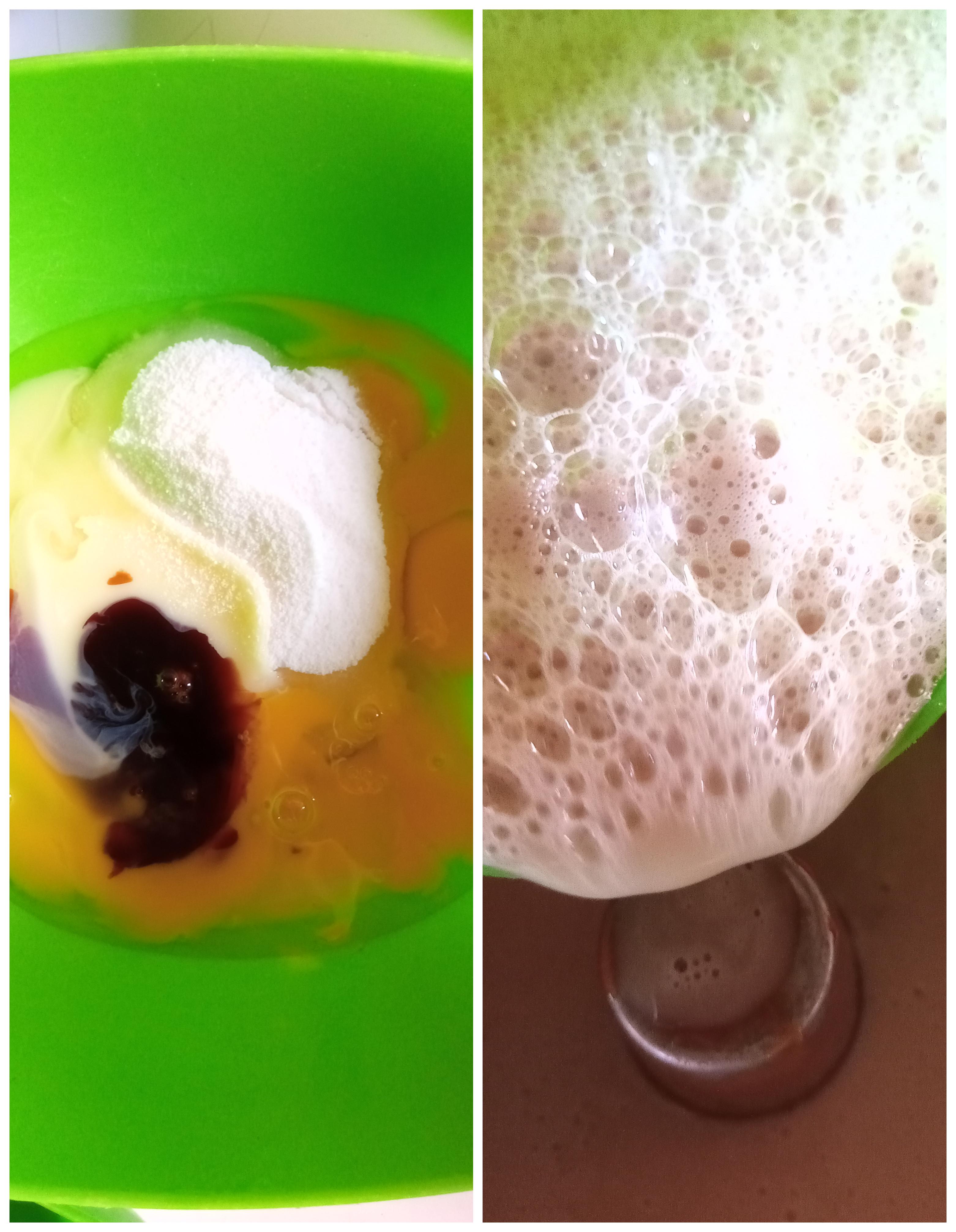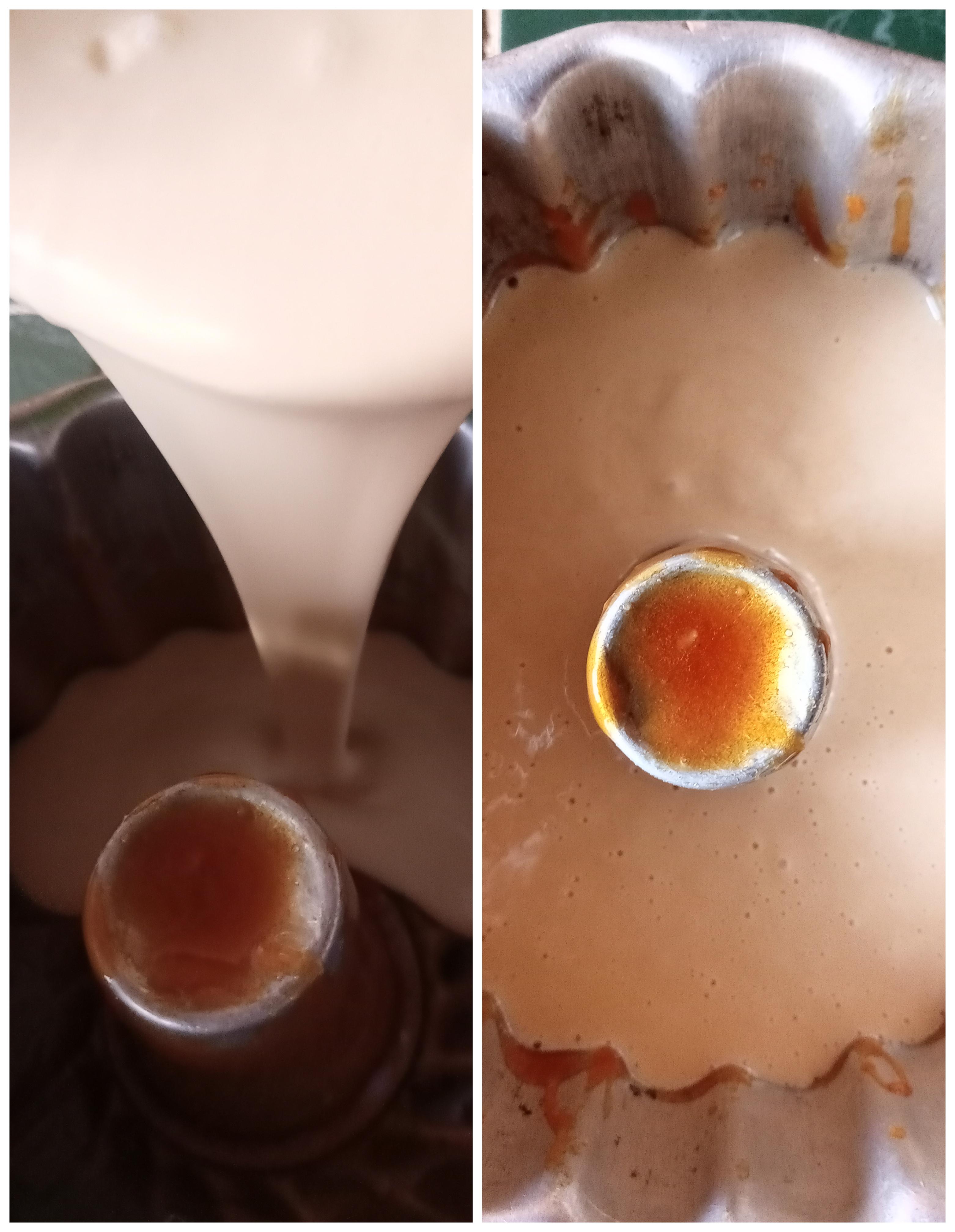 Luego tomamos todos los ingredientes para el quesillo y los mezclamos muy bien, ya mezclado todo, como mucho cuidado vertemos la mezcla sobre la de la torta. Luego lo llevamos al horno ya precalentado a 200⁰c a baño de María por 1:20 minutos a mi me tomo ese tiempo.