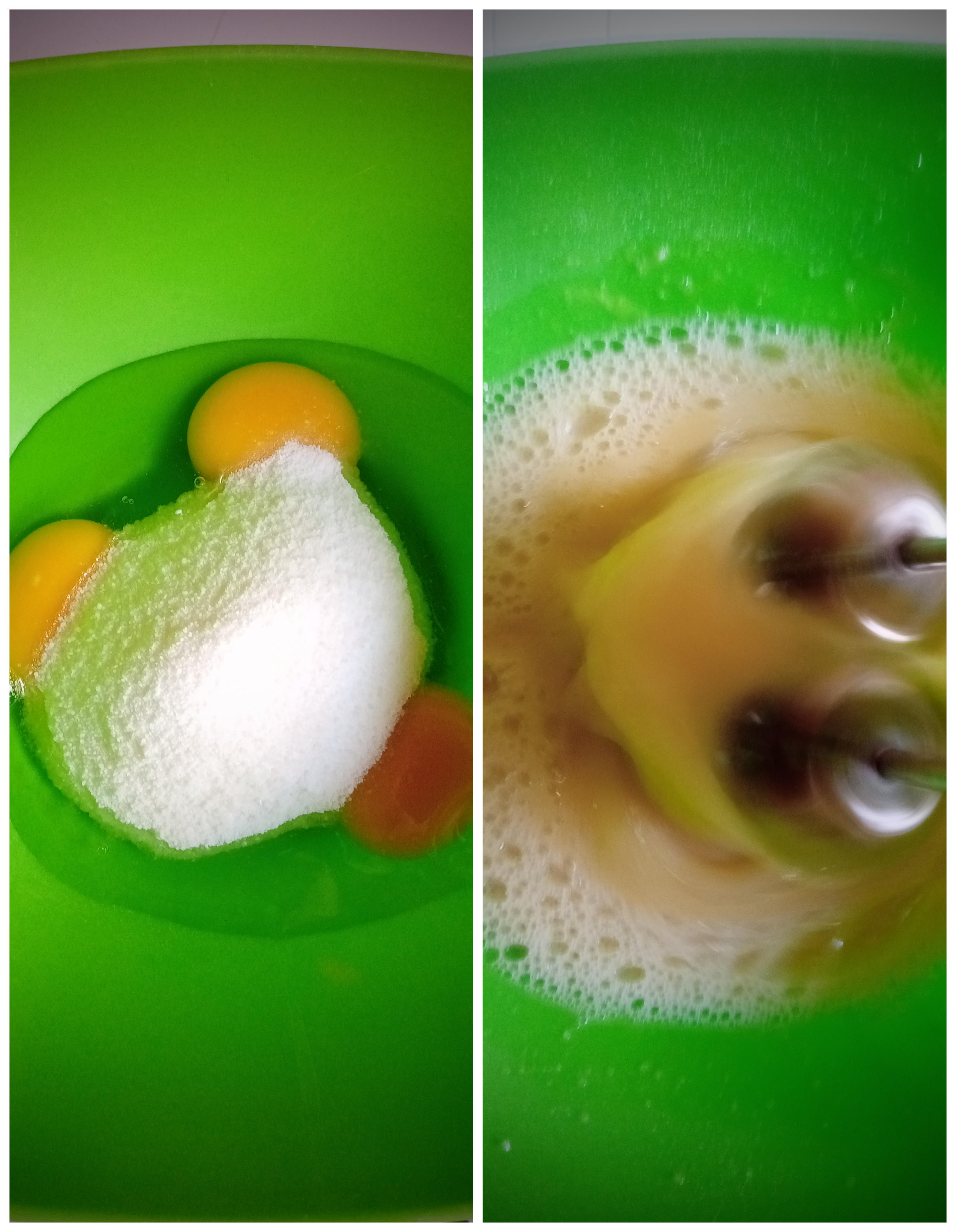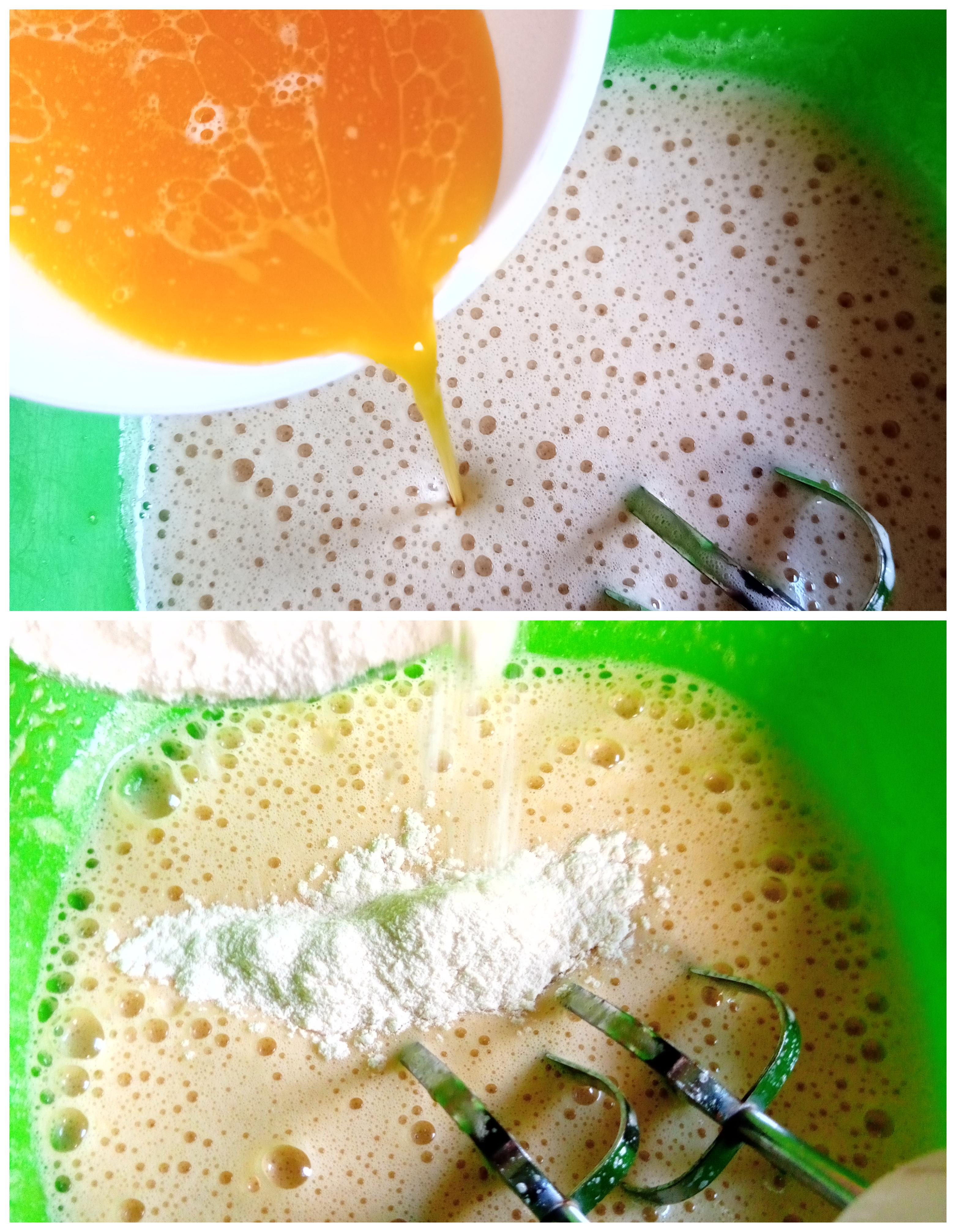 En un bol colocamos los huevos con el azúcar y mezclamos hasta integrar todo y doble su tamaño, agregamos el chorrito de vainilla junto con la mantequilla derretida, mezclamos bien hasta integrar, acto seguido incorporamos el harina poco a poco hasta integrar bien y ya integrado todo vertemos el sumo de la naranja, llevamos al mode y lo vertemos y reservamos para luego realizar el quesilo.