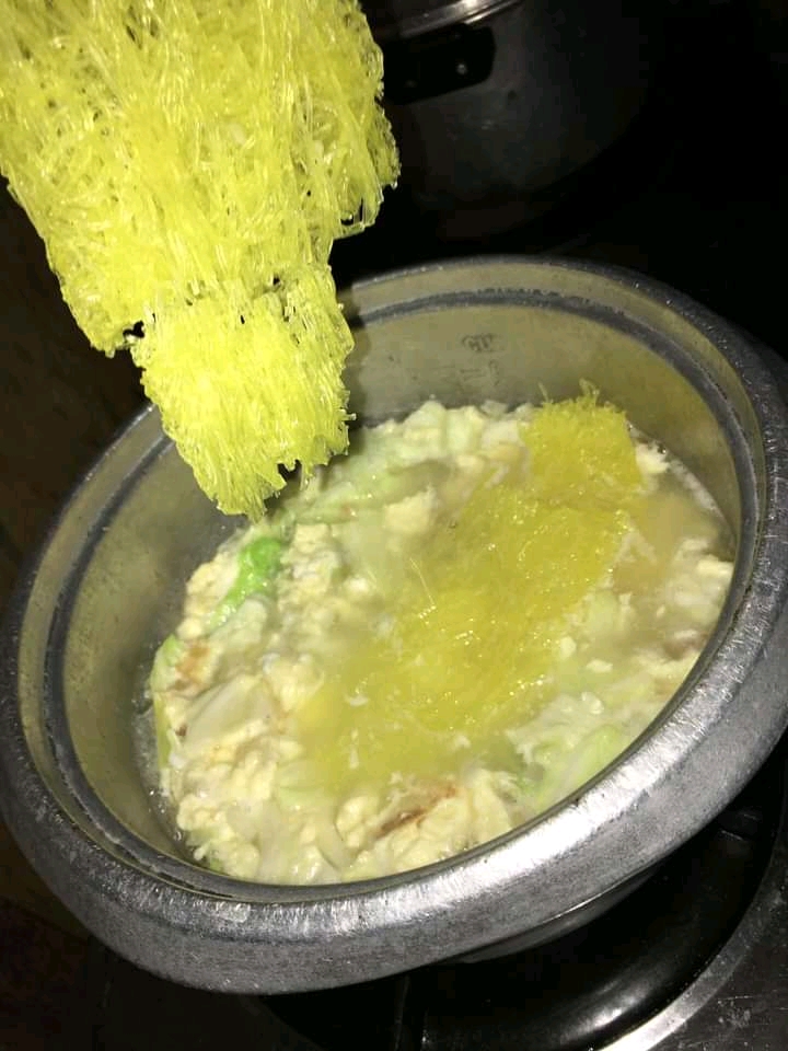 -If the cabbage is going to thin, add the (bihon/Noodles) then stir it together until it soft.