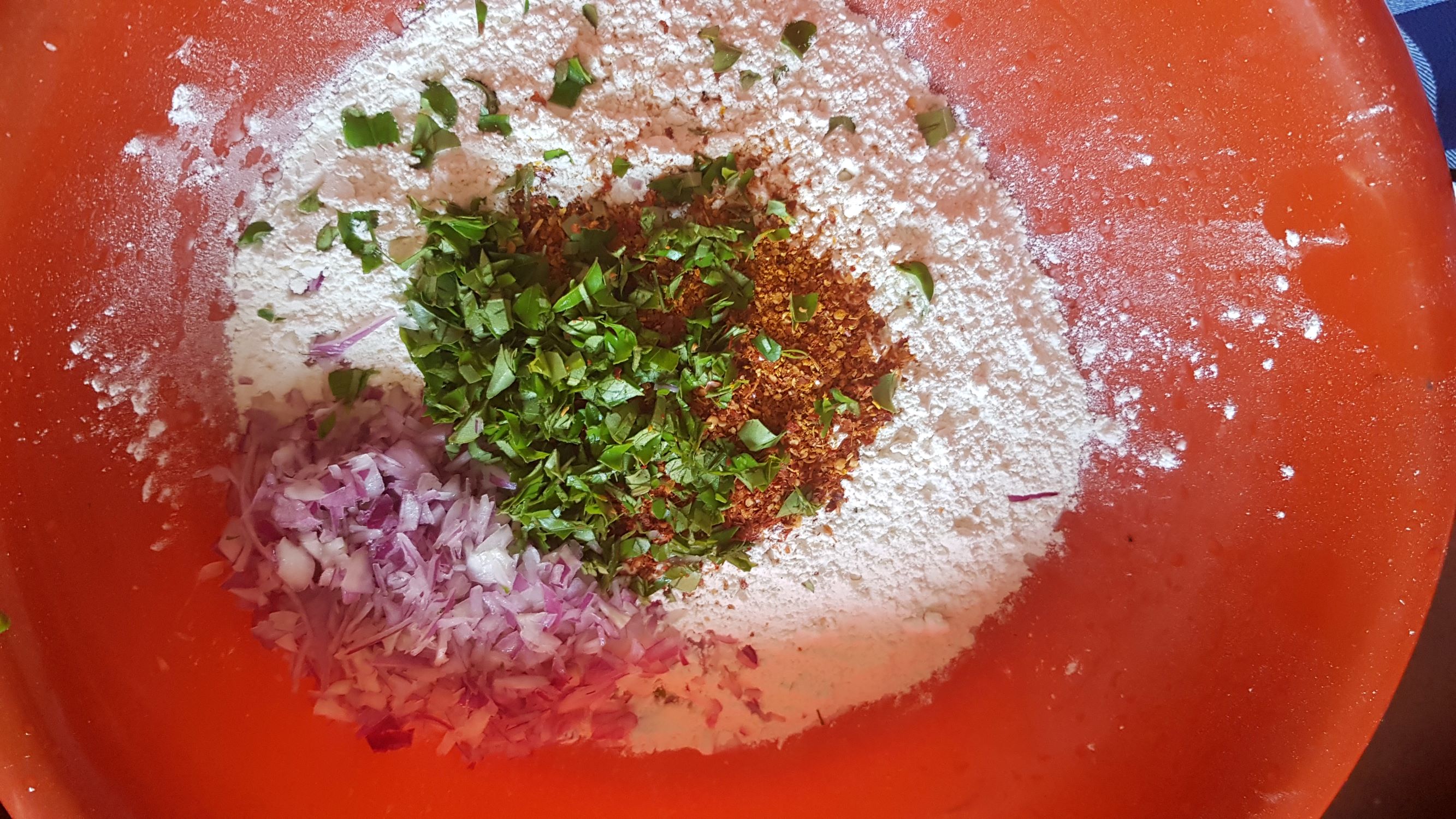 • Chopped onion, curry leaves and green chilies
