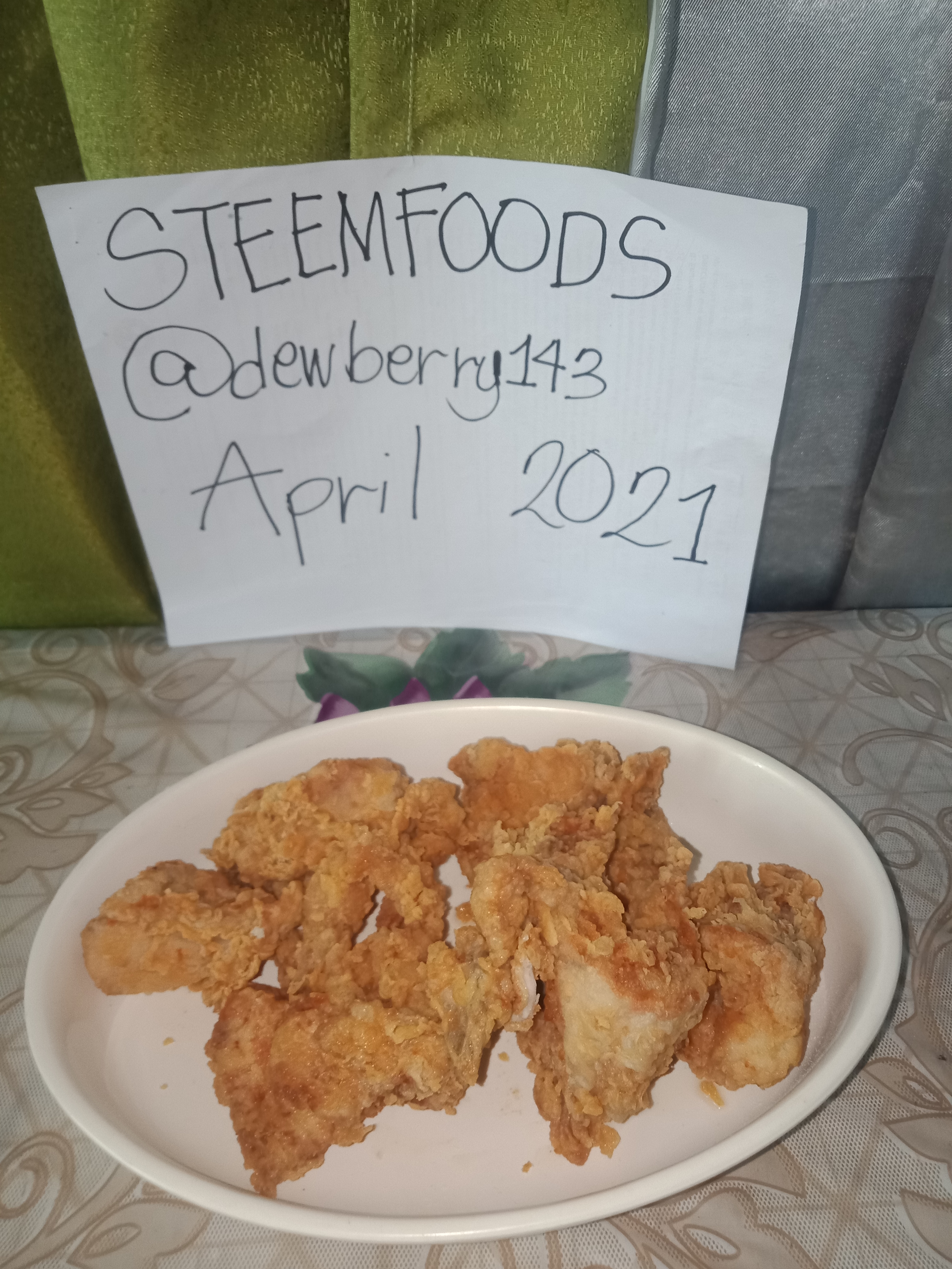 Hello there, steem foodies! What are you doing today? I hope you're doing well. My name is Dewberry143, and I'd like to share with you my breakfast for today Crispy, juicy fried chicken in my own style.