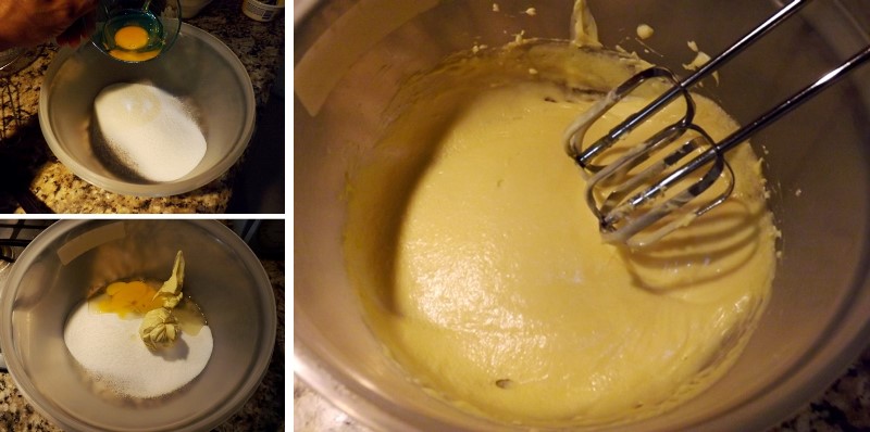 - En un bol se agregan la mantequilla, el azúcar y el huevo, y se mezclan muy bien con la batidora.