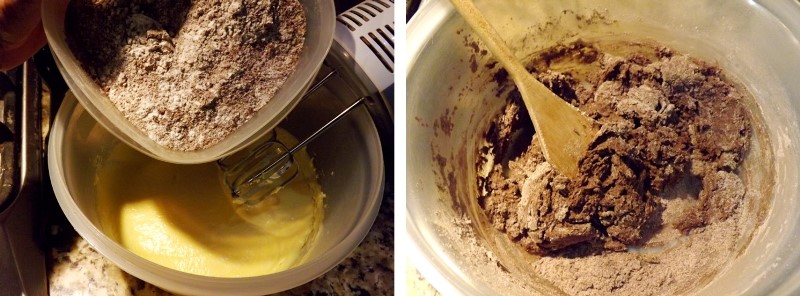 - Luego se incorporan los ingredientes secos y se combinan ambas mezclas con una paleta.