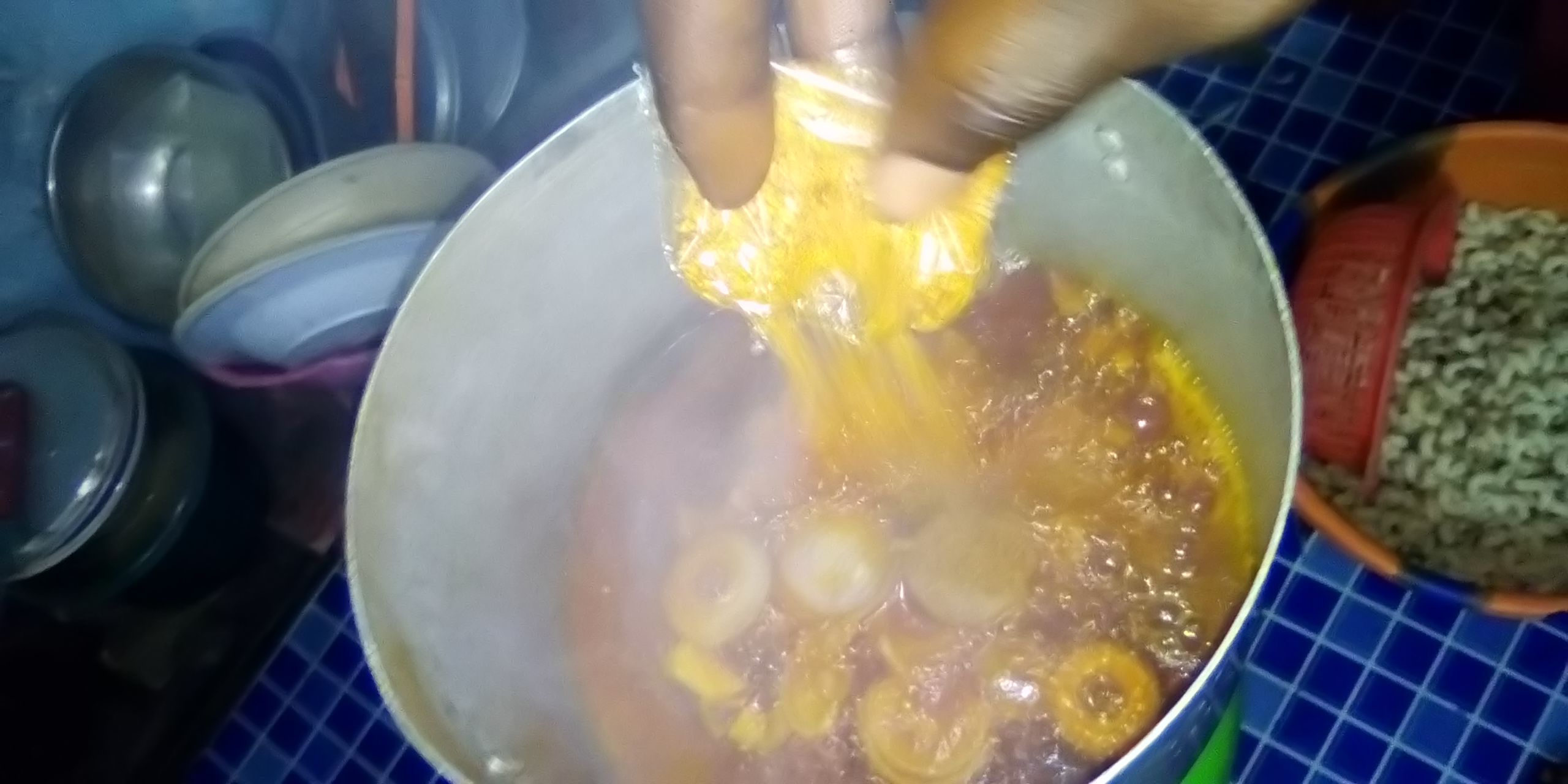 • Return the pot to fire 🔥.Add oil and allow to fry.