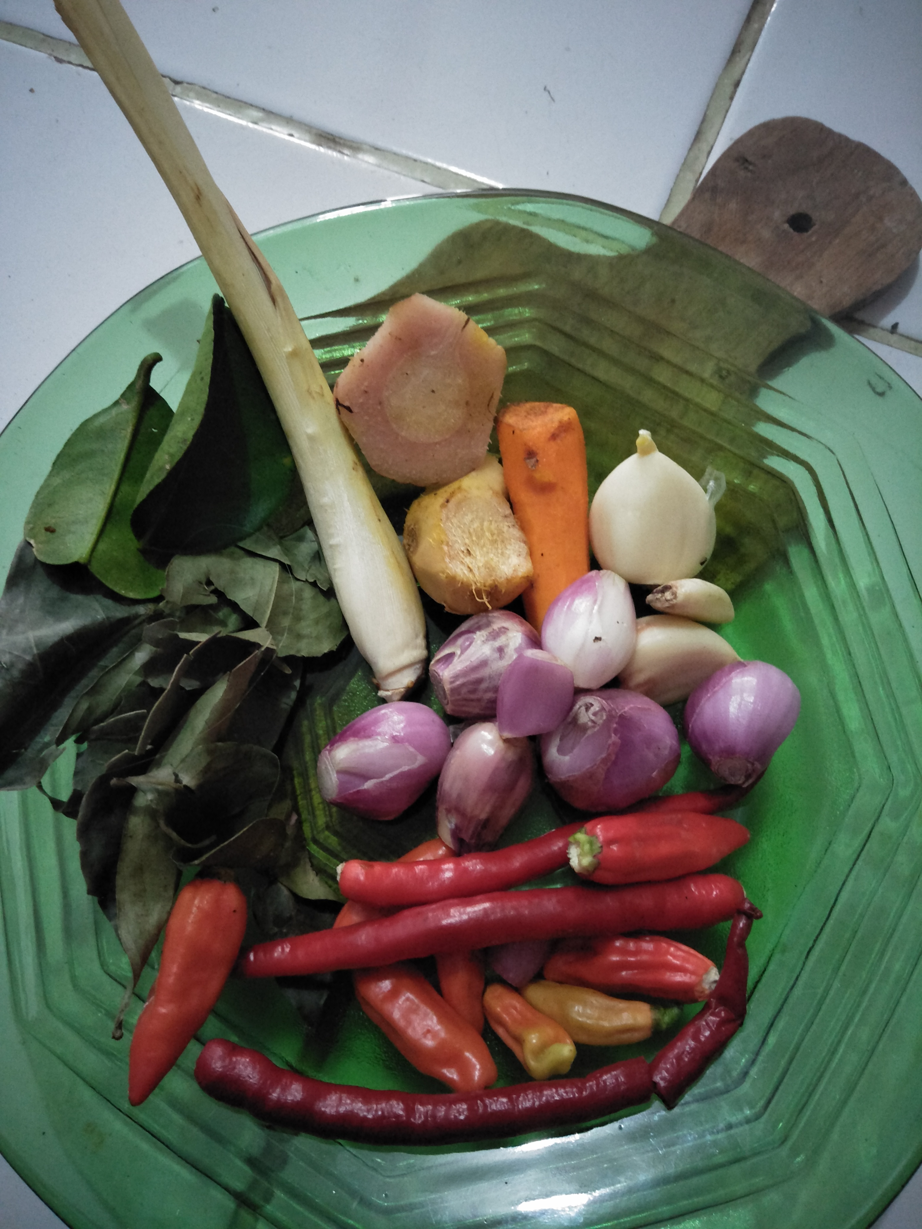 - Daun salam dan daun jeruk masing -masing 3 lembar.
