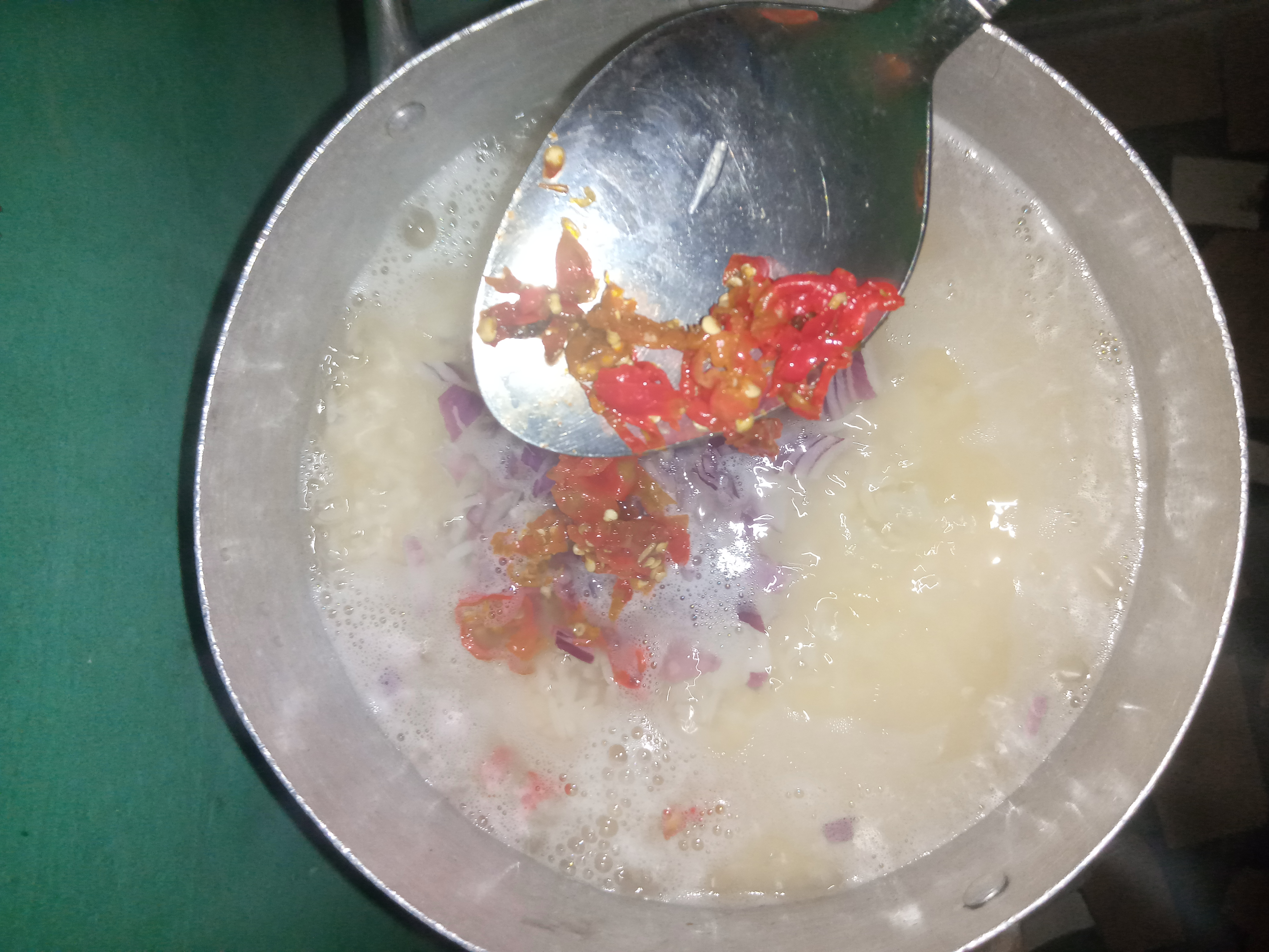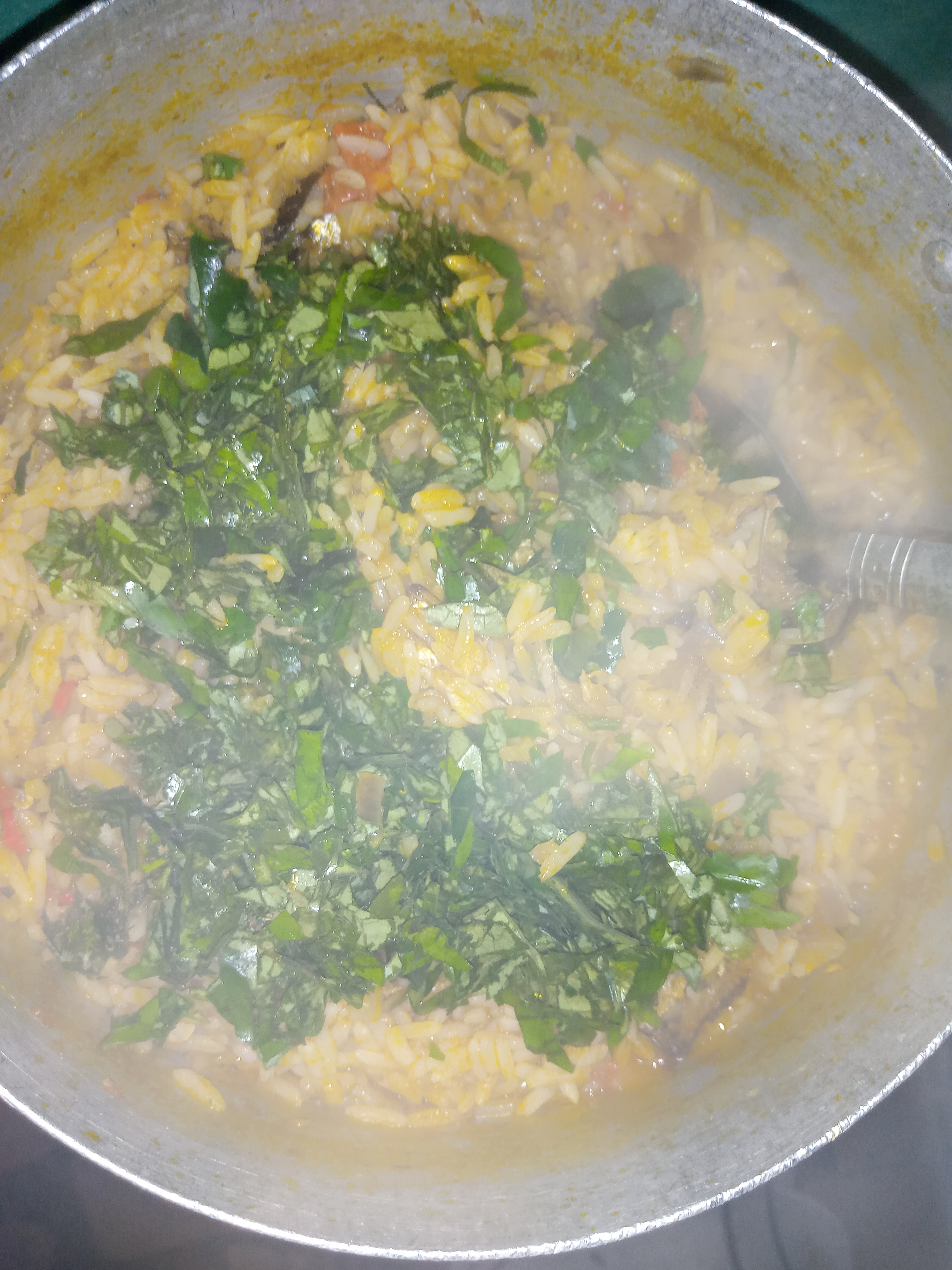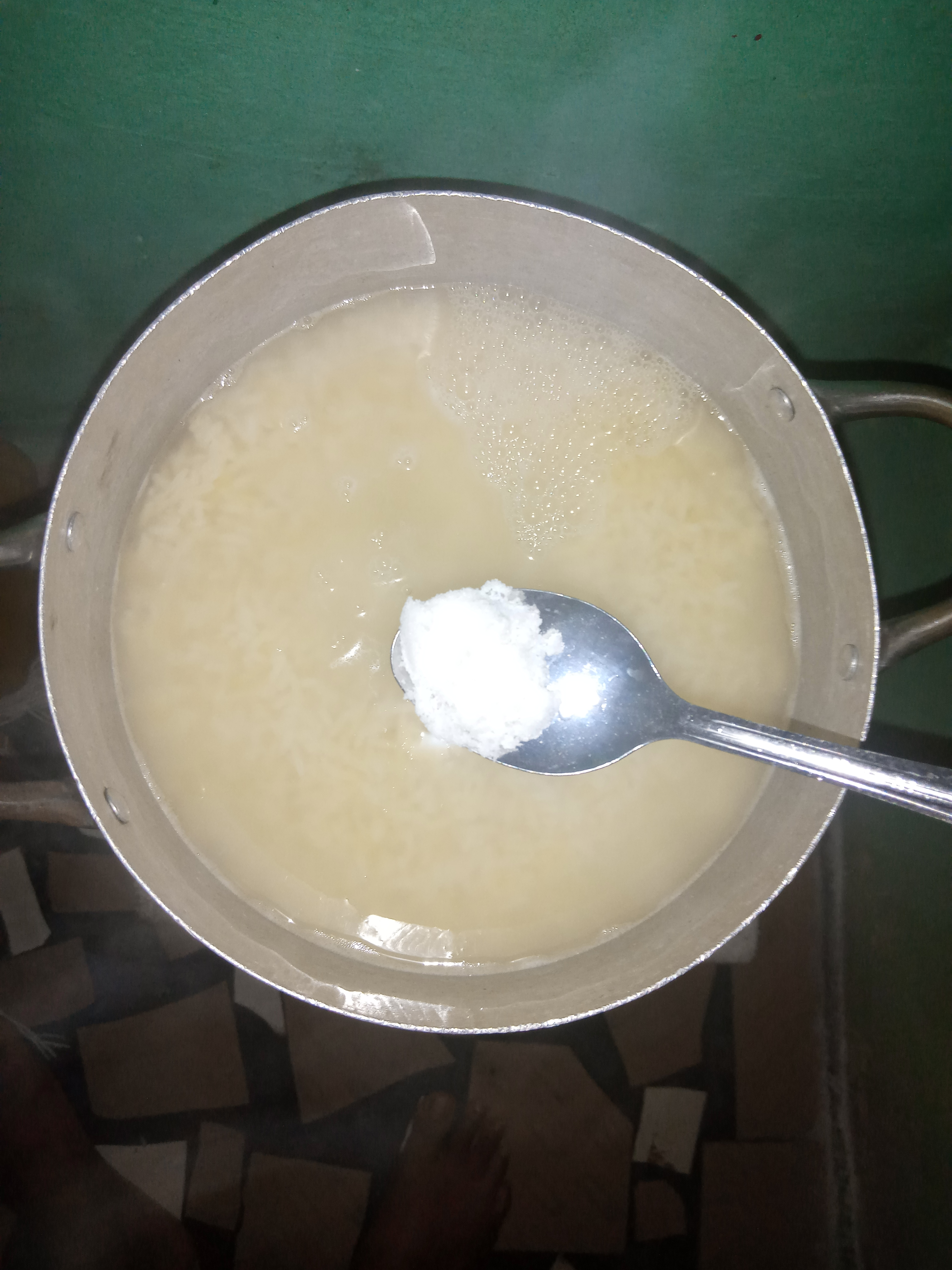 Step 2: Be sure rice is almost soft and with little water on its top,then add salt to taste.
