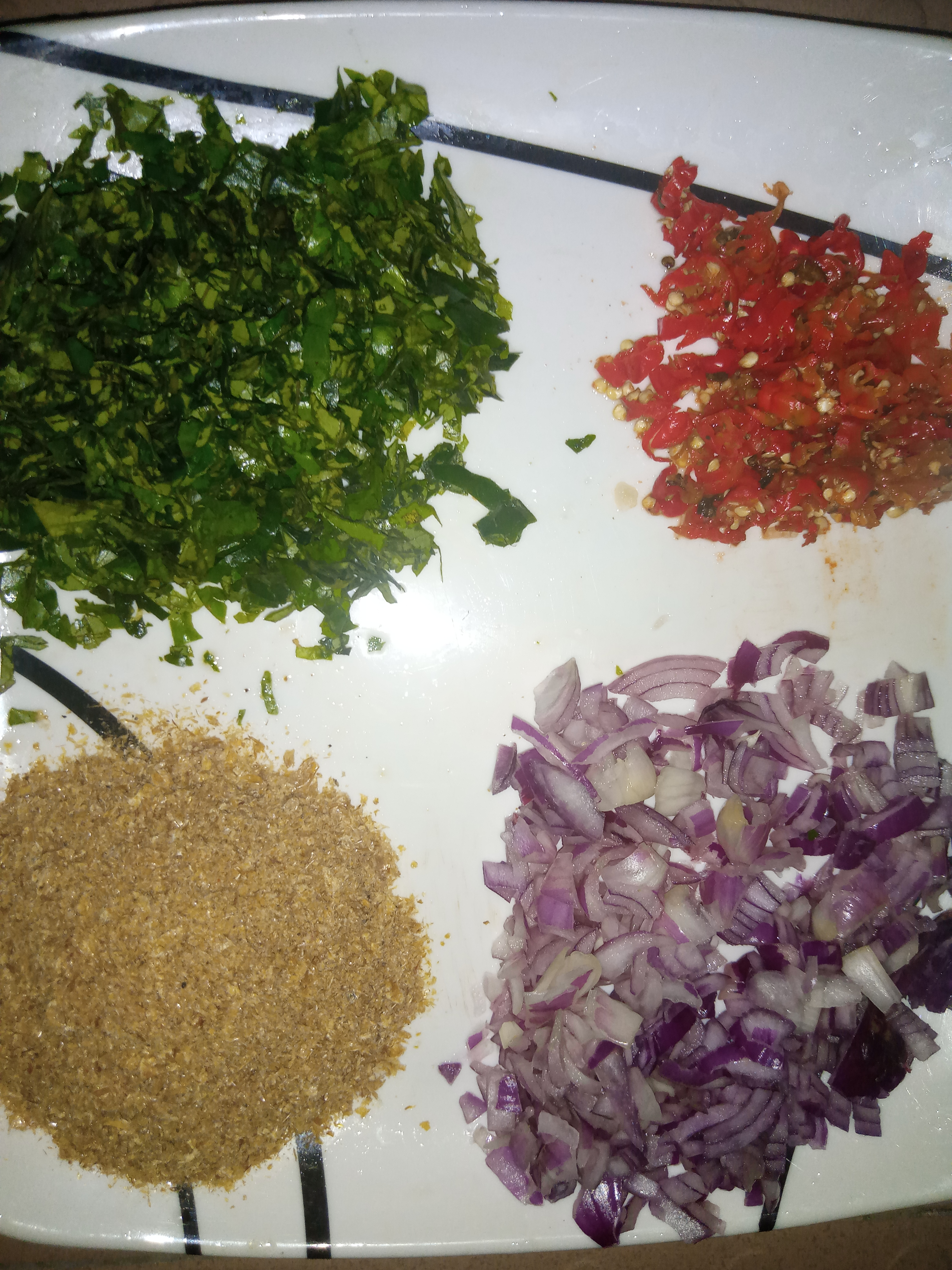 - Pepper (i like mine sliced),onion,crayfish and any vegetable of choice. I used a local vegetable here called Adusa in my dialect, that is black pepper leaves.