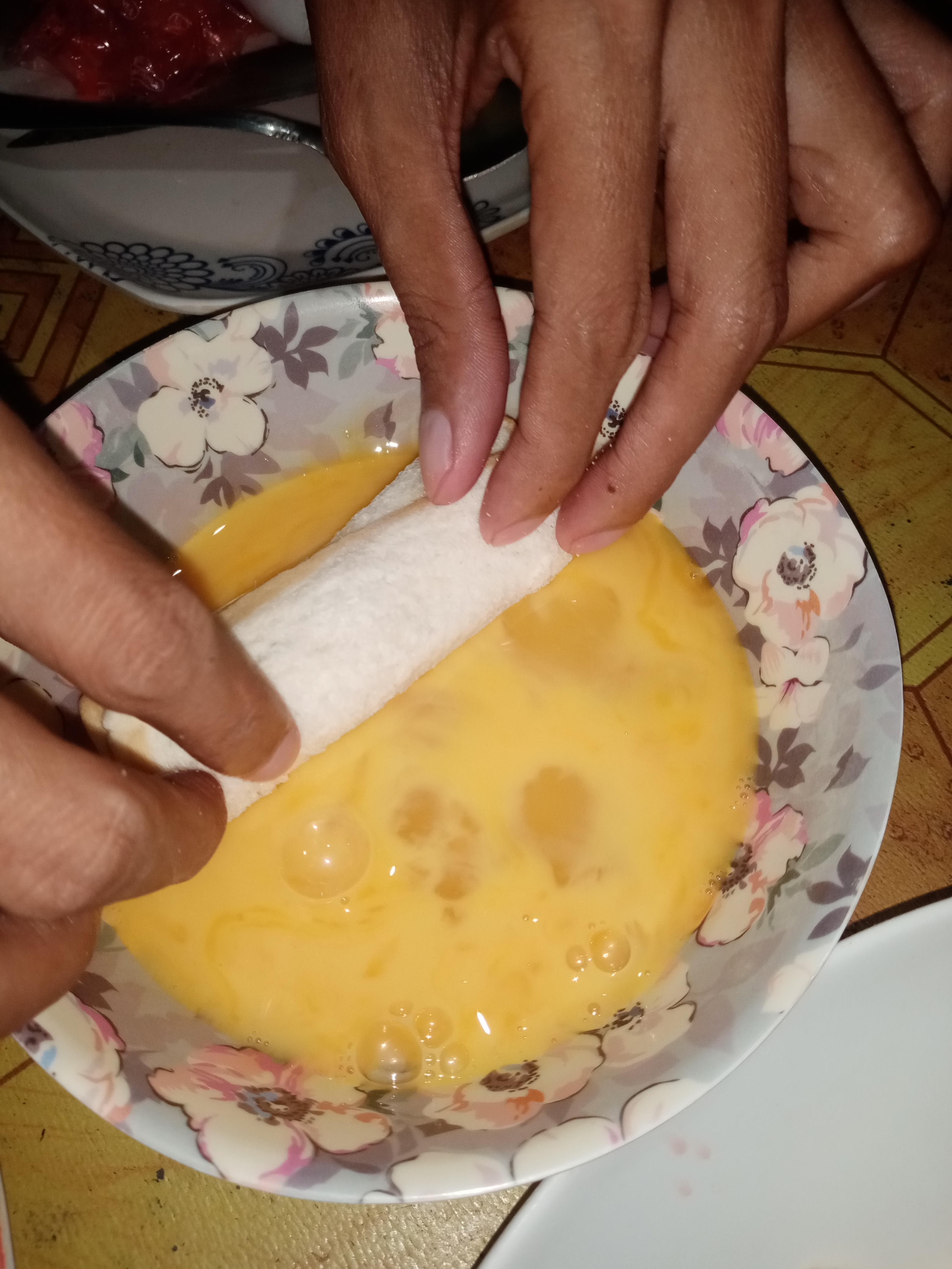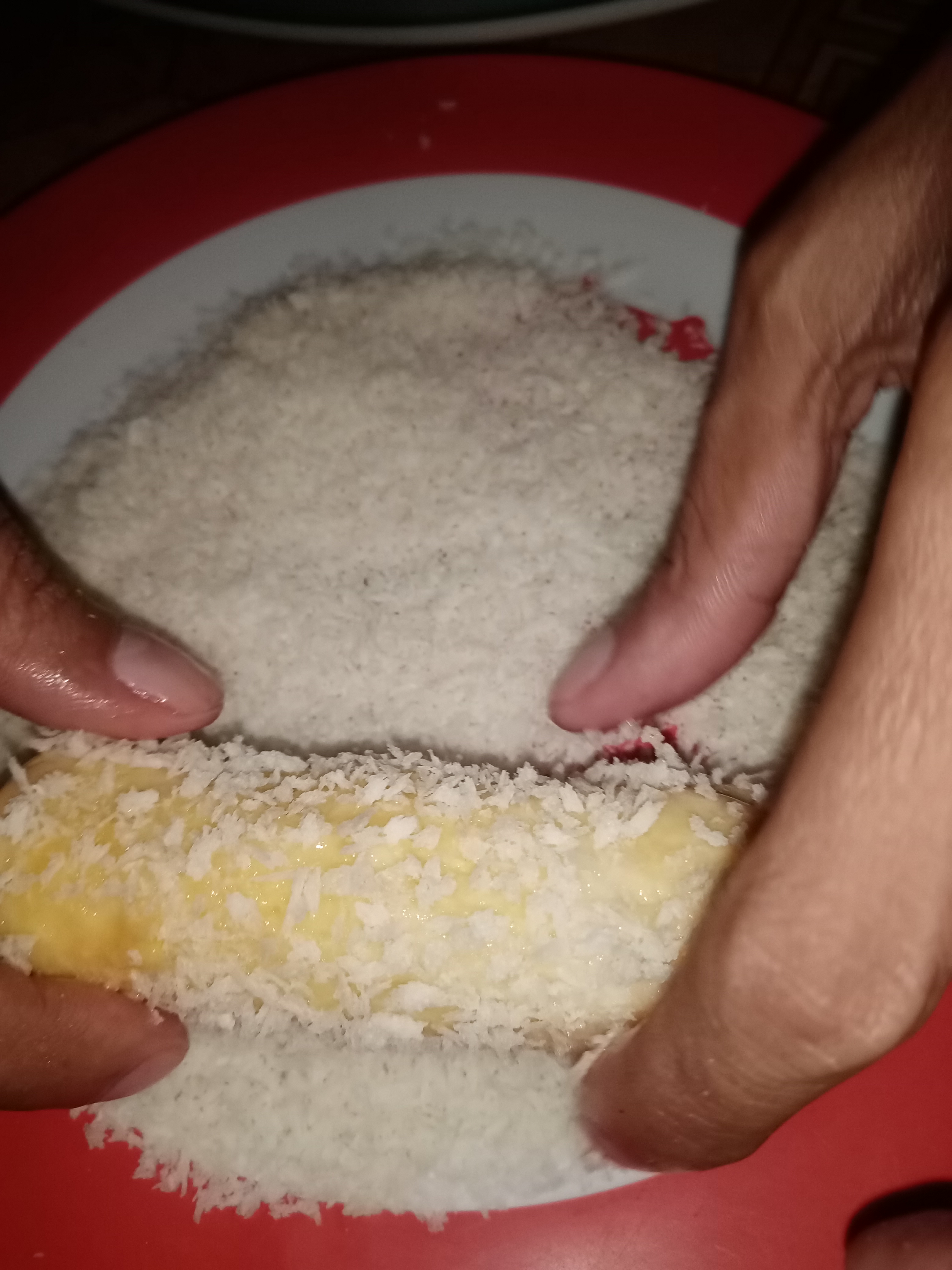 •Roll the finished set to the beaten egg.