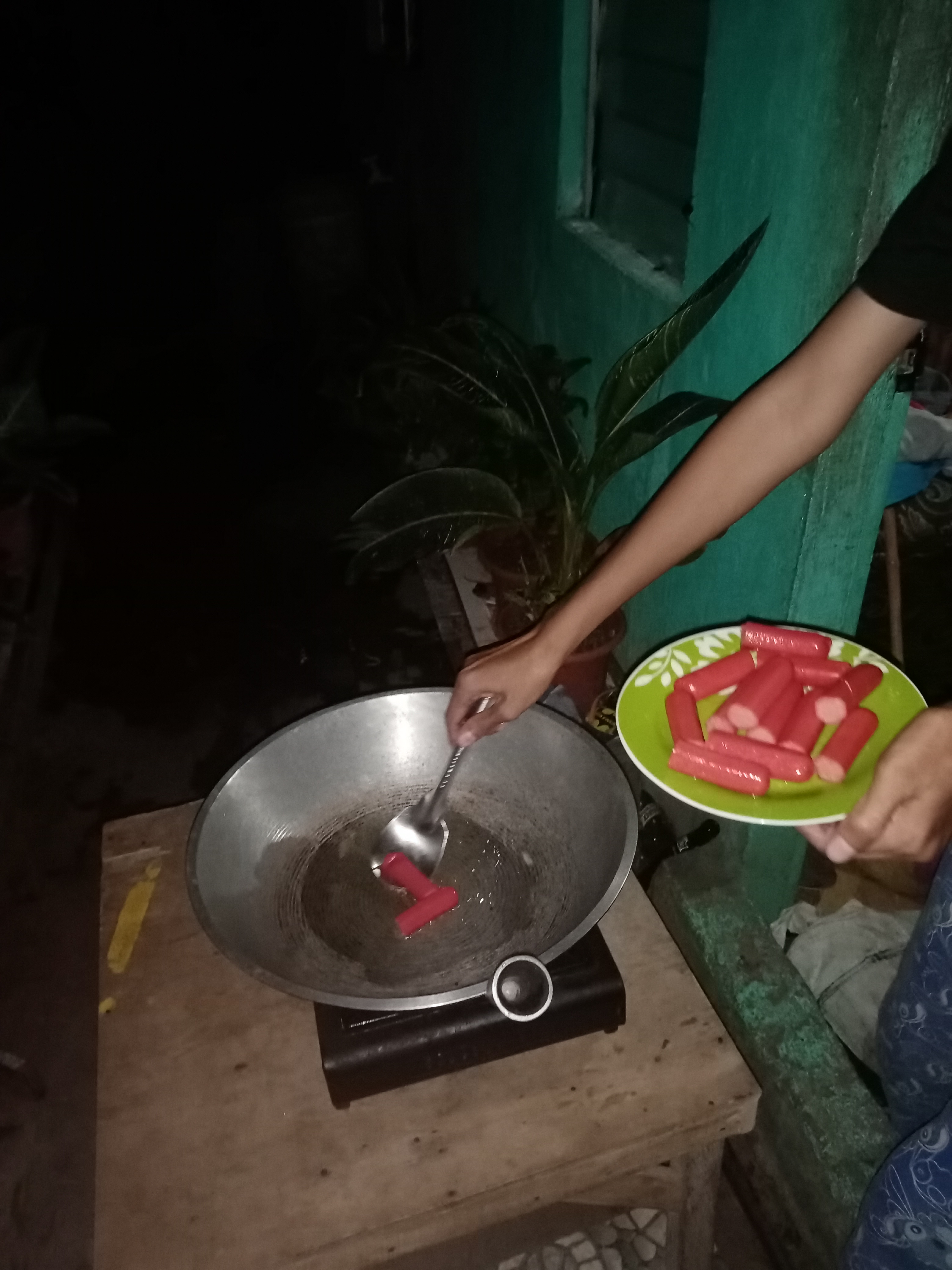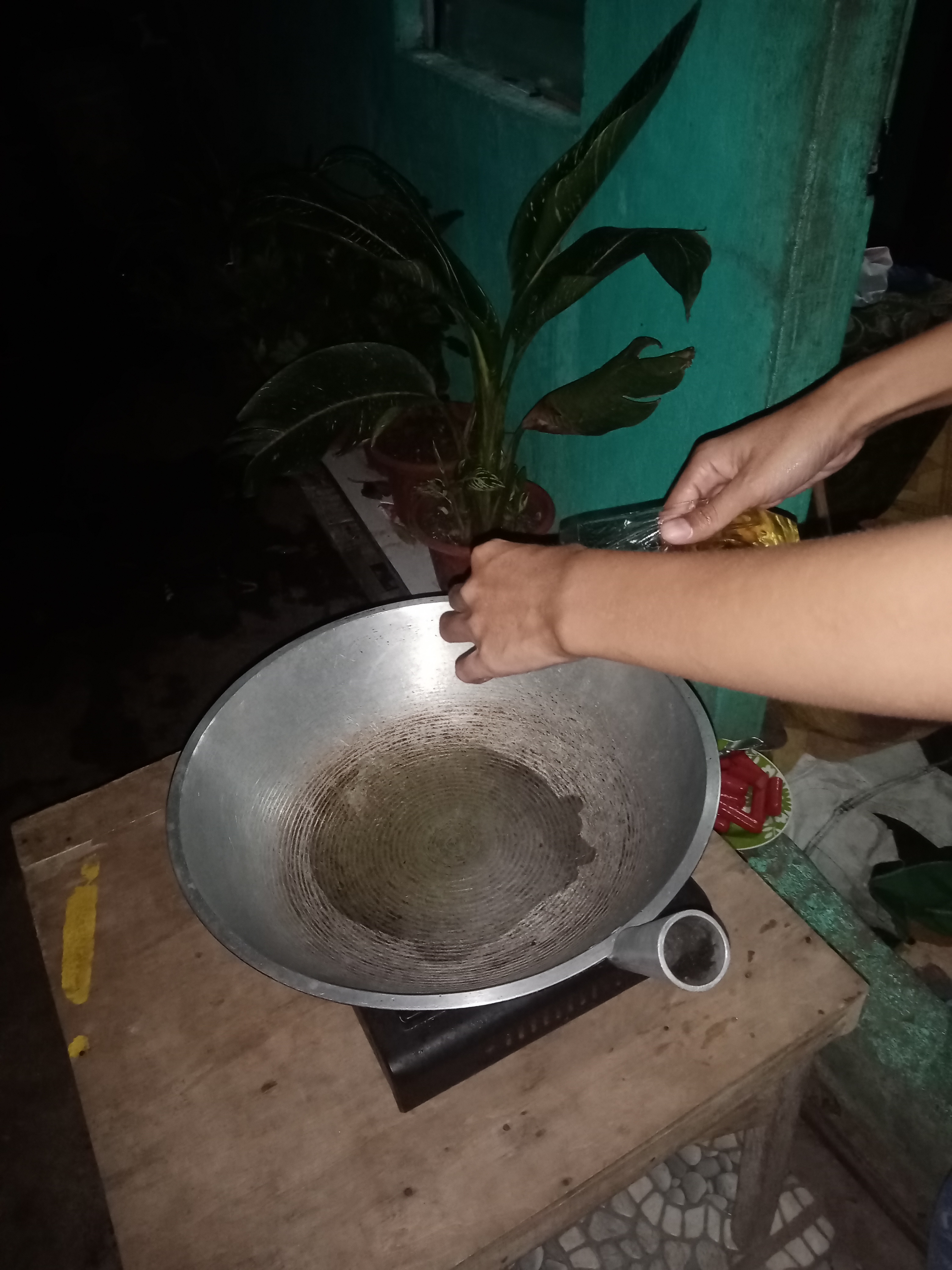•Next, put the pan in the stove and put a generous amount of oil and heat it with a medium heat.