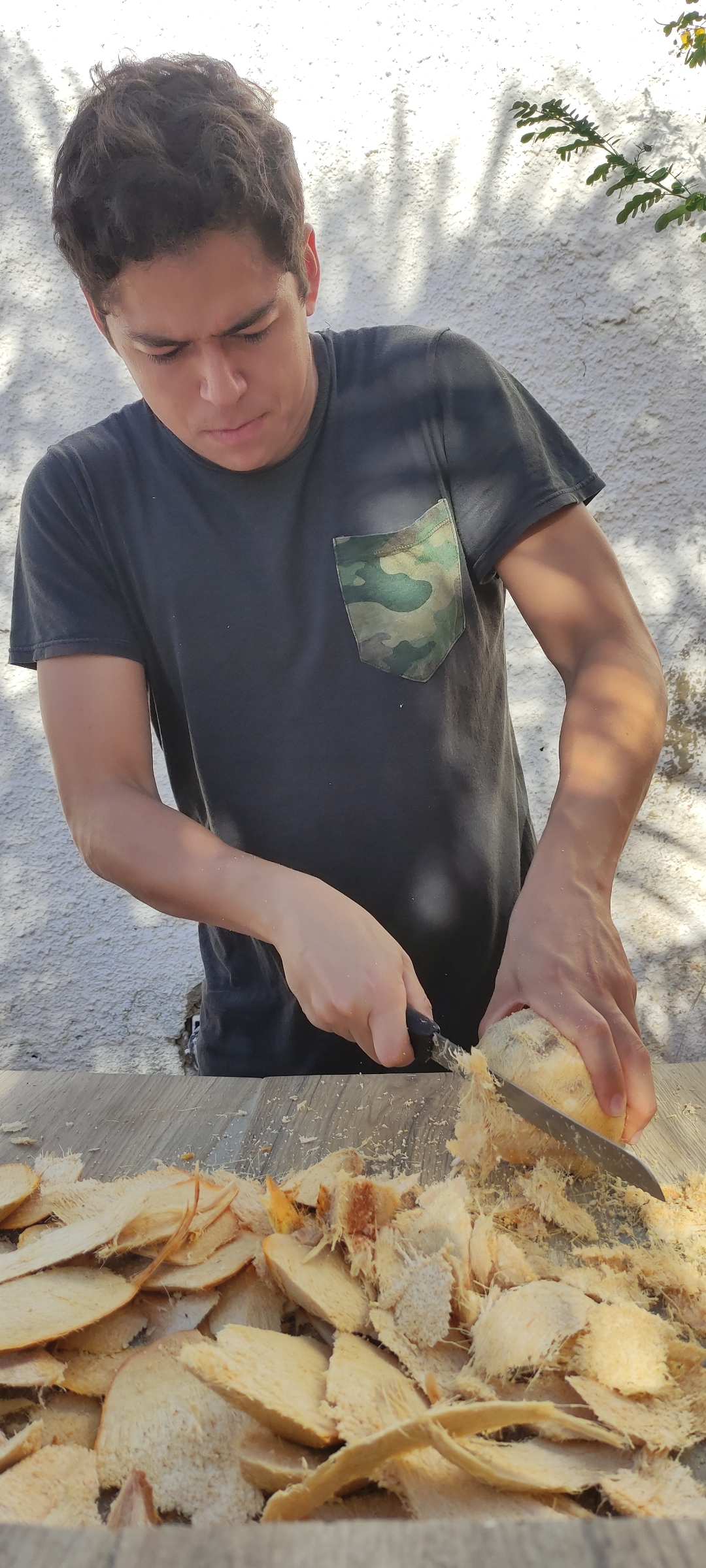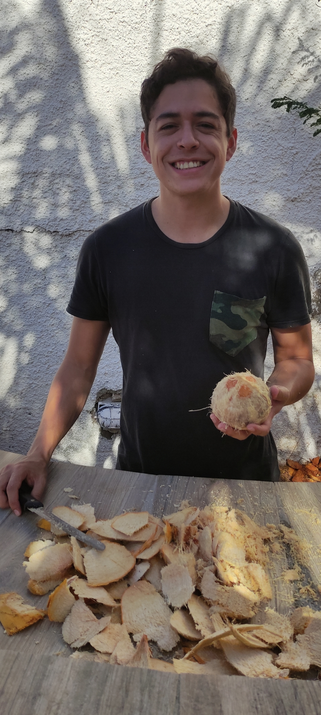 Empezamos a picar para sacar toda la parte exterior que recubre tan precioso coco, es un trabajo super arduo pero vale la pena jajaja, así que les mostraré el paso a paso, abriendo y abriendo y cortando y cortando el coco