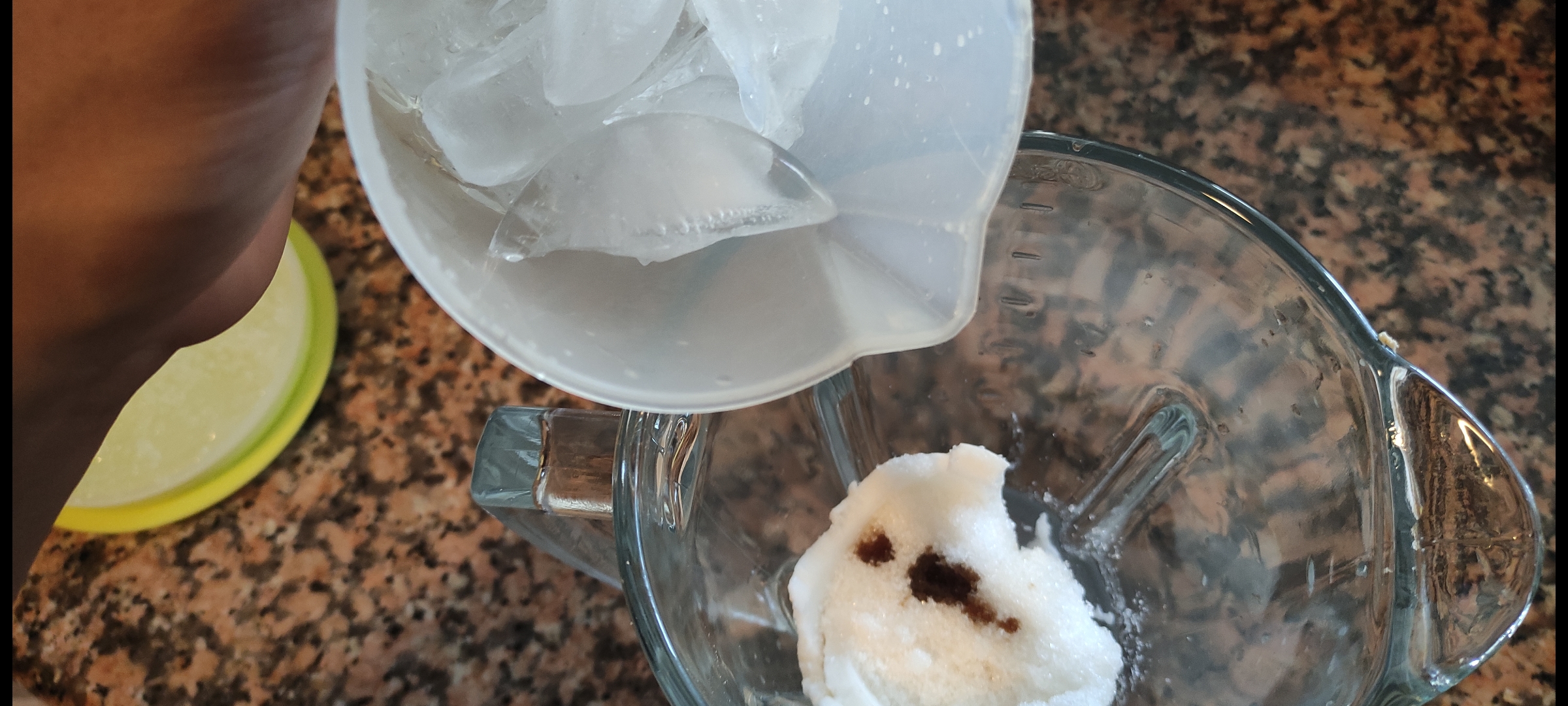 Ahora echaremos 1 taza de Hielo, todo en la licuadora