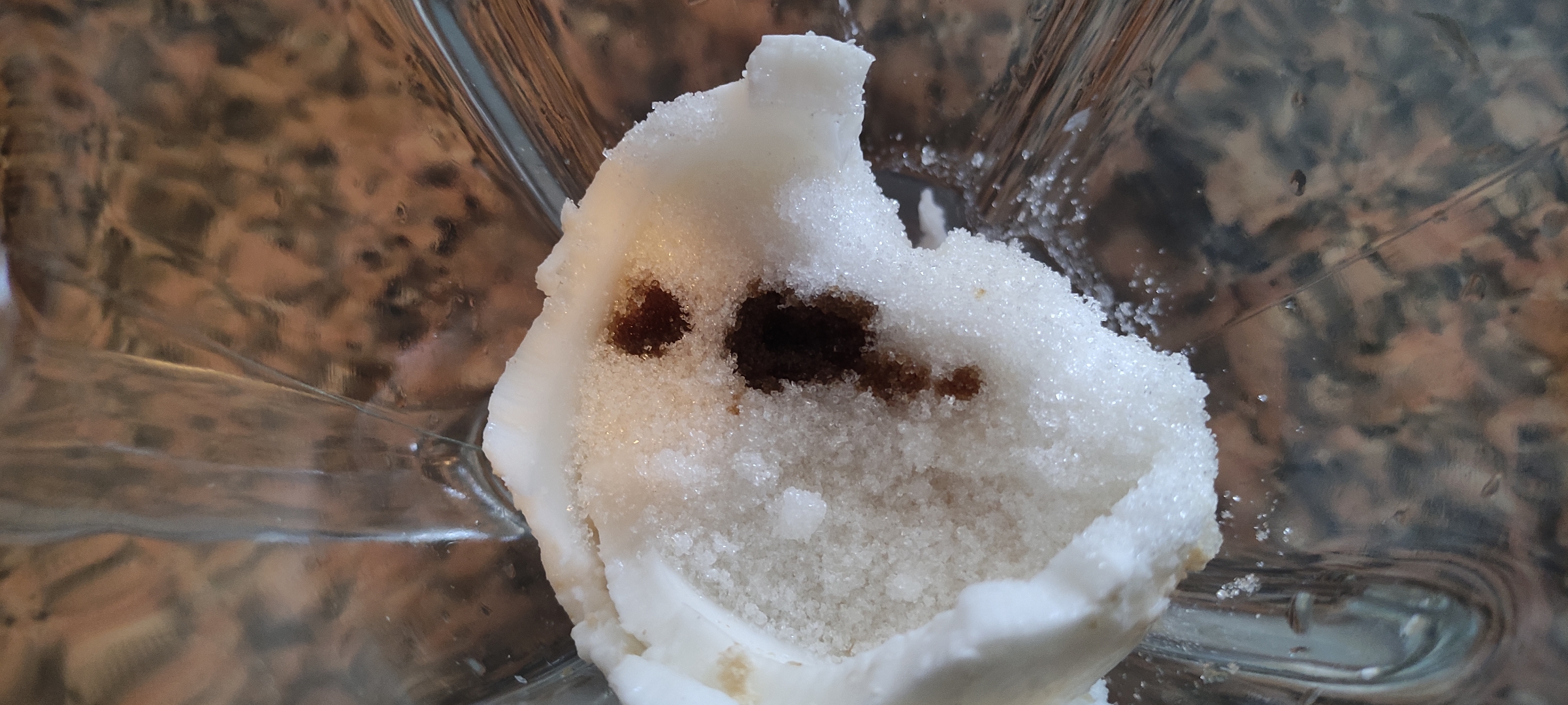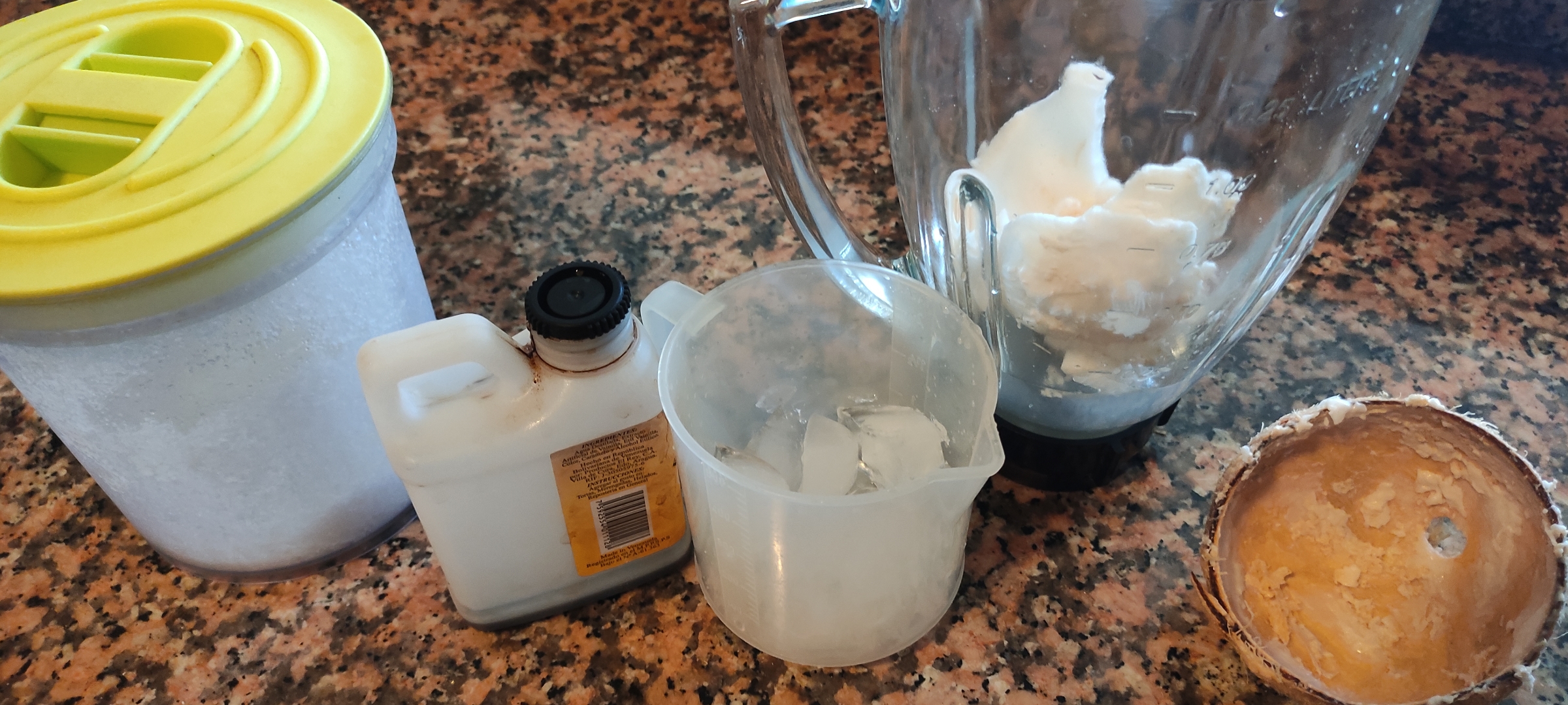 Pues lo primero son los ingredientes que usaremos, además del coco, usaremos solamente hielo, extracto de vainilla, azúcar y listo!