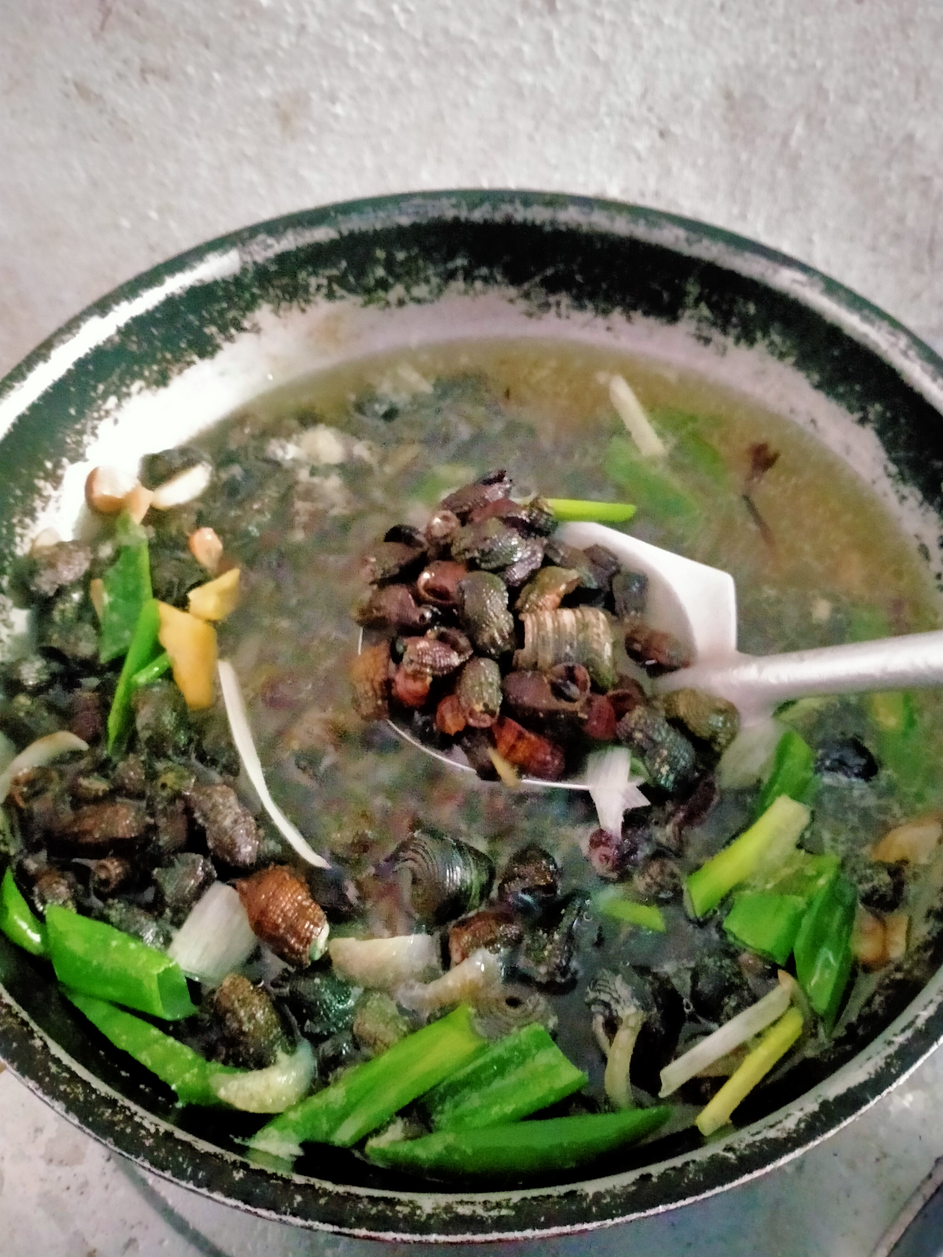 - Now, it's time to put our main dish - the Sea snail. Always remember to put the Sea snail slowly to prevent burn from boiling water. After putting it, cover the pot and bring to a boil for 2-3 minutes.