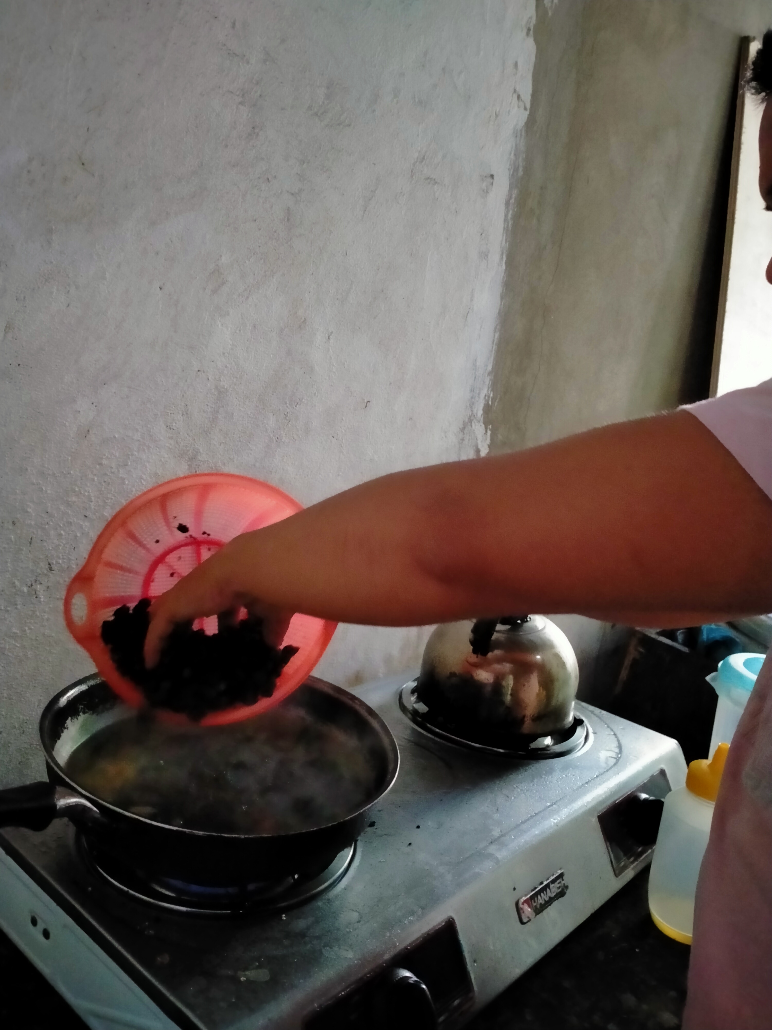 - After sauteing the garlic and the onion, let's pour a half pitcher of water and add the ginger and the cayenne pepper together. Then, cover the pot until it boils to absorb the flavor of the garlic, onions, ginger and the cayenne pepper.
