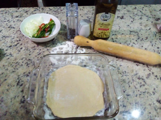 4.- Cuando la masa haya reposado y aumentado de tamaño, amasamos nuevamente para quitarle un poco de aire y extendemos con un rodillo en el molde que ya preparamos anteriormente.