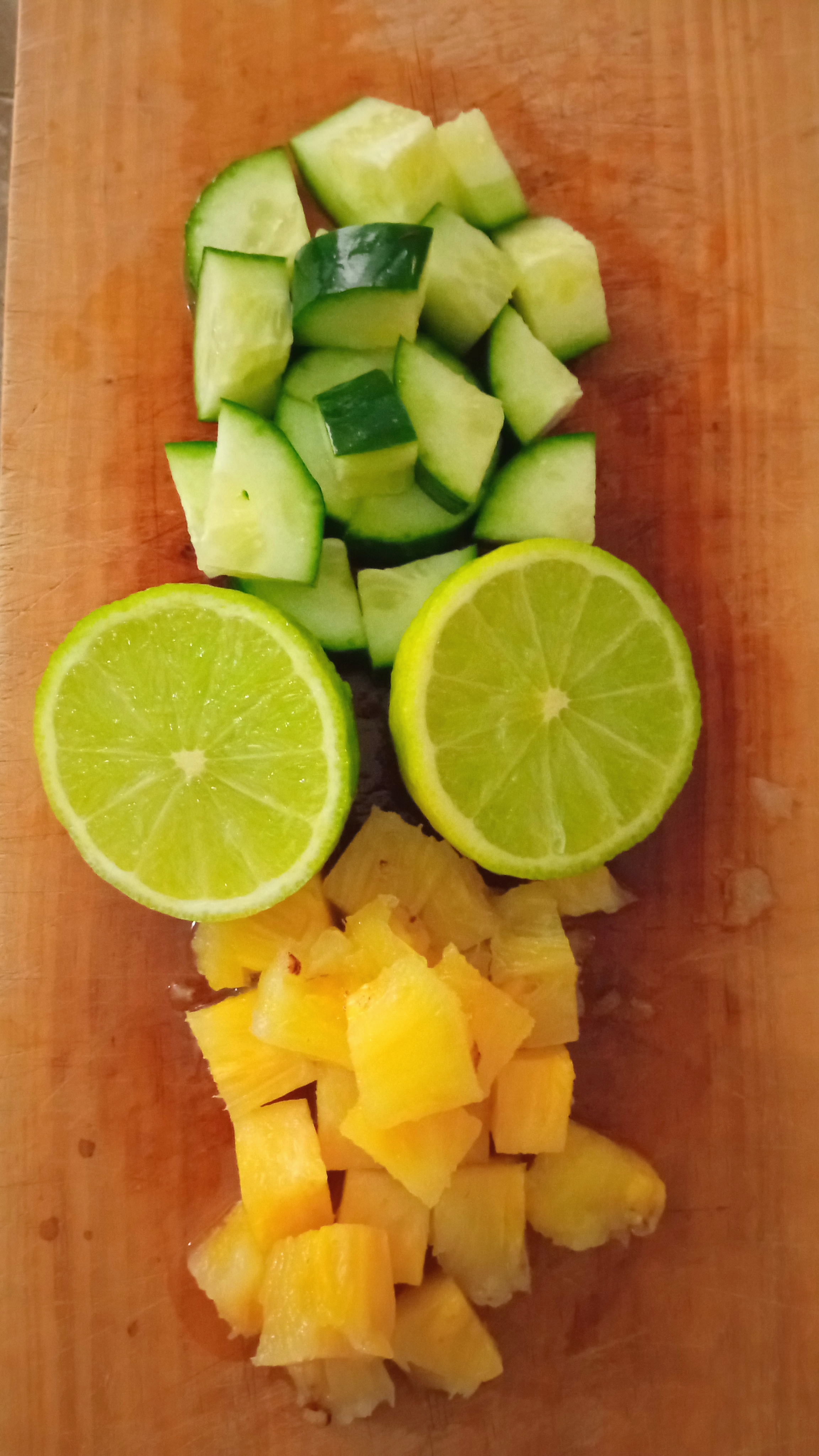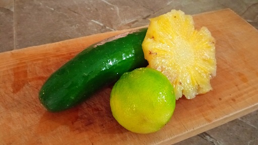 Lavamos muy bien el pepino ya que lo agregaremos con su concha, puedes lavarlo con jabón y retirar. Cortar en cubos para facilitar el licuado.
