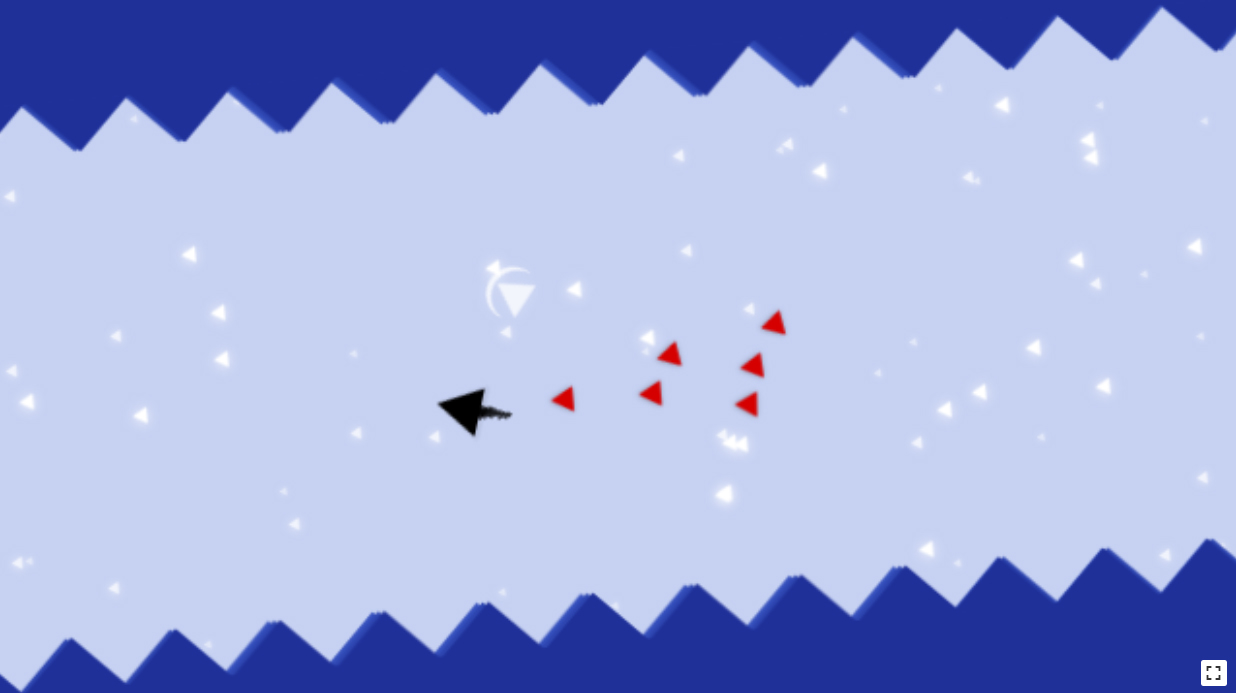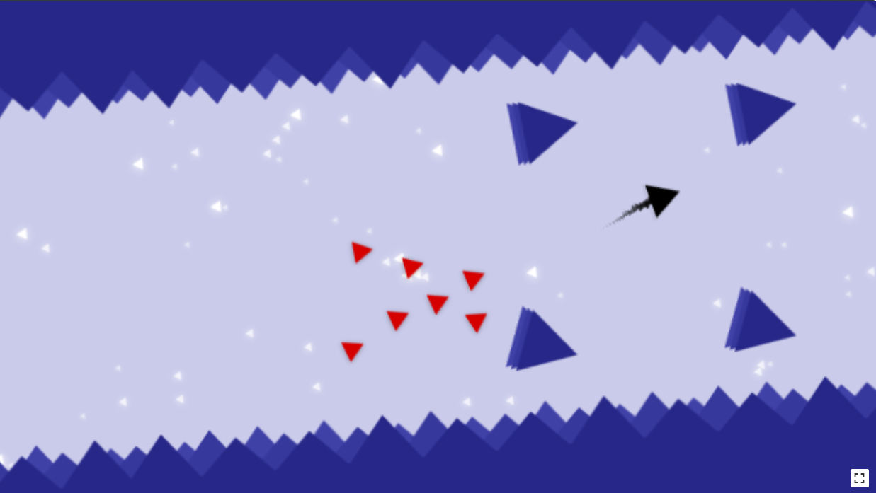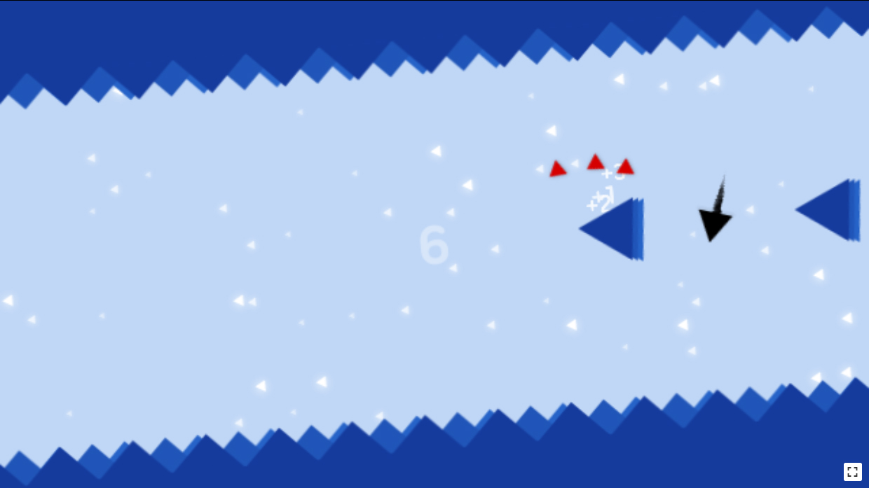 But that's not all. The goal of the game is actually to destroy as many red triangles with you can. Since the red triangles are slower than how you can manoeuvre the black triangle, you would want to move your triangle around the big blue triangle in a way that would make the red triangles crash into them. As you progress through the map, it gets harder as the big blue triangles moves in a more erratic fashion, making them hard to dodge.