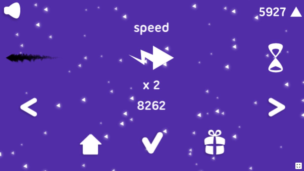 And here comes the part that I like the most about this game. You can actually use those points. By using the points you earned, you can buy gadgets that helps you with your journey: Speed Upgrade, Deflect, Time stopper, and Invincibility. If you buy the Speed upgrade, the speed of your movement increases permanently, and so each Speed Upgrade is more expensive than the previous.