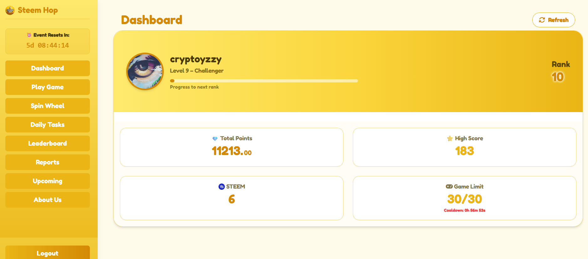 Je suis plutôt en bonne position dans le classement sur le jeu steemhop, mais il reste encore plus de 5 jours pour la fin de l'event et le paiement des reward, pour le moment 6 steem me revienne.