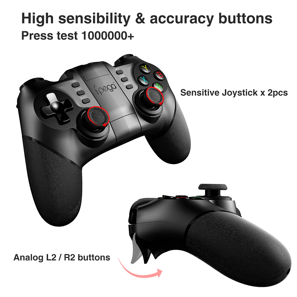 iPega PG - 9076 Bluetooth Gamepad is a wireless game controller which can be used in the different platforms such as Android smart phones / iPhone / tablet / smart TV / TV box and other equipment. It also supports play computer games. Ergonomic design, you can enjoy long-playing gaming.