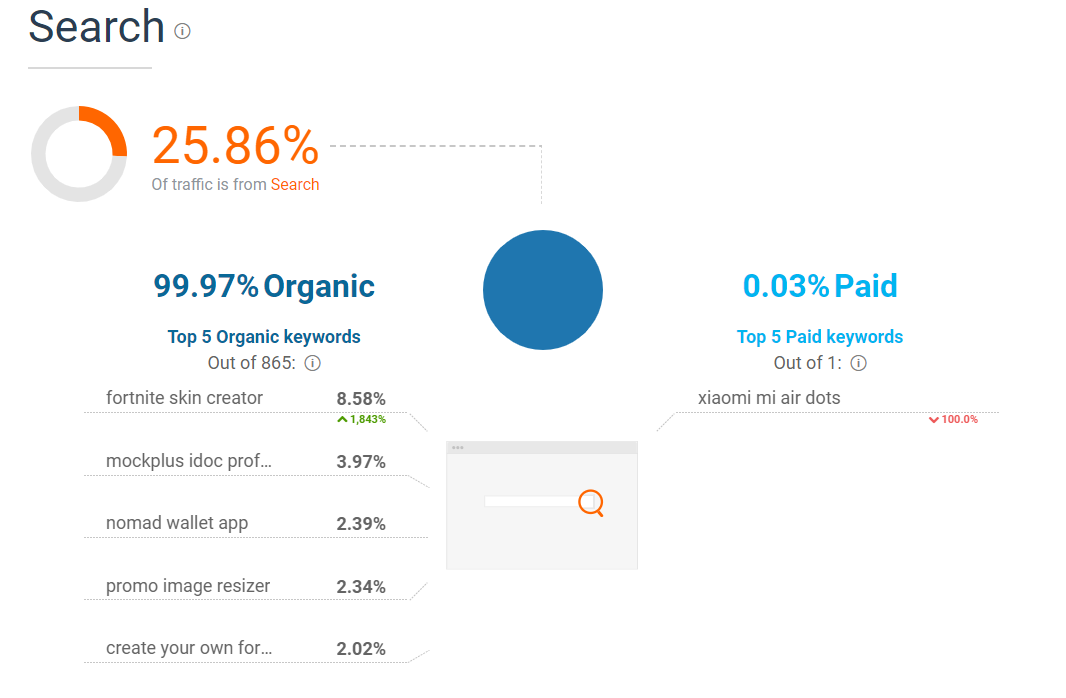 If we have a look at Similarweb, the results are not that satisfying, but you can get an idea. So it is about 25% of the traffic based on organic search, based on Similarweb.