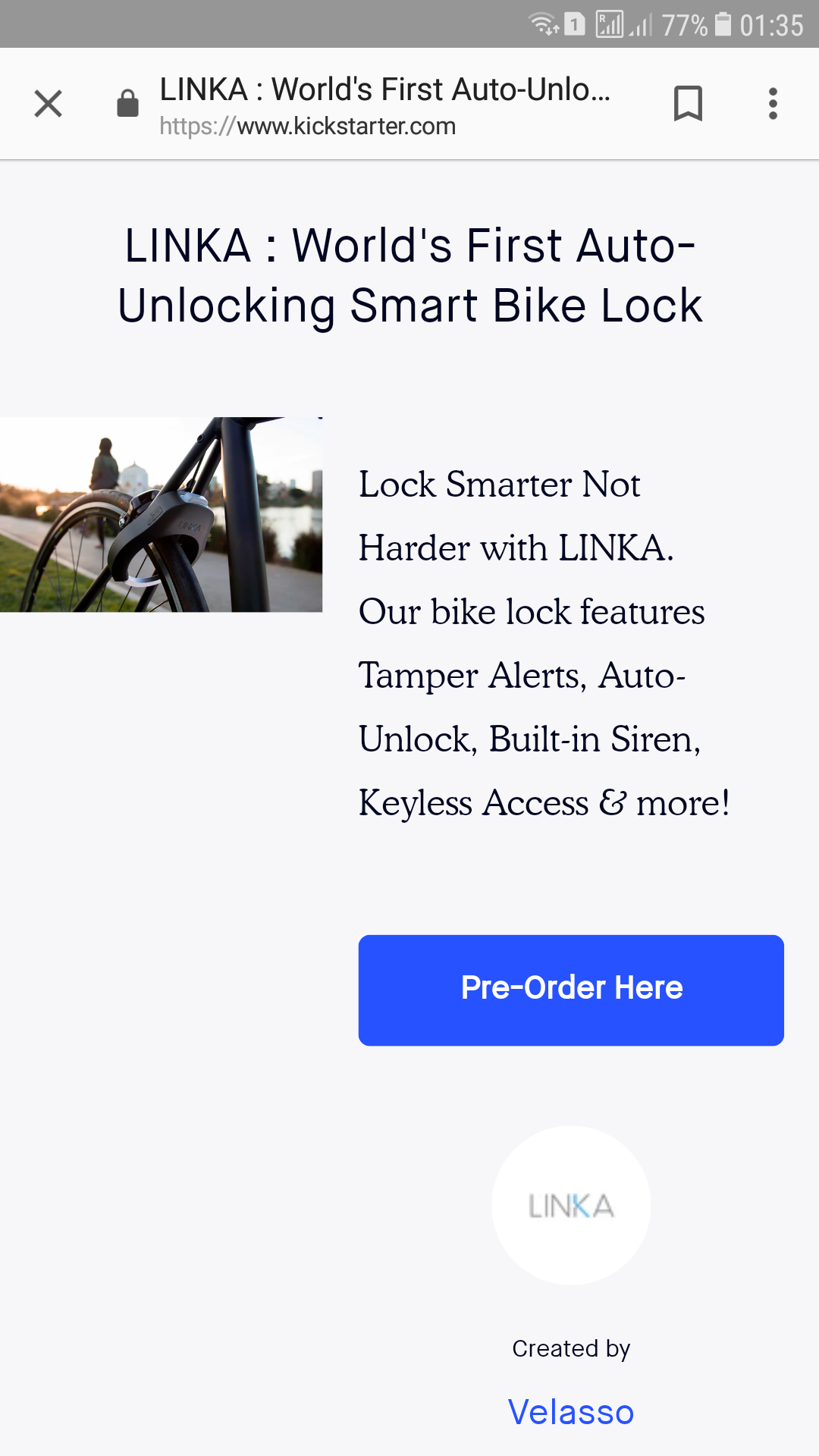Hi @dayleeo based on their kickstarter campaign they are accepting pre-orders. Take a look https://www.kickstarter.com/projects/2081318073/linka-worlds-first-auto-unlocking-smart-bike-lock