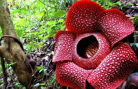 Rafflesia Arnoldii grows sideways and not rises like a corpse flower. When the flowers bloom, they can reach 1 meter in diameter and weigh up to 10 kilograms. The period of growing up to the bloom is around 9 months. This flower will only bloom for 7 days before then withering and dying.