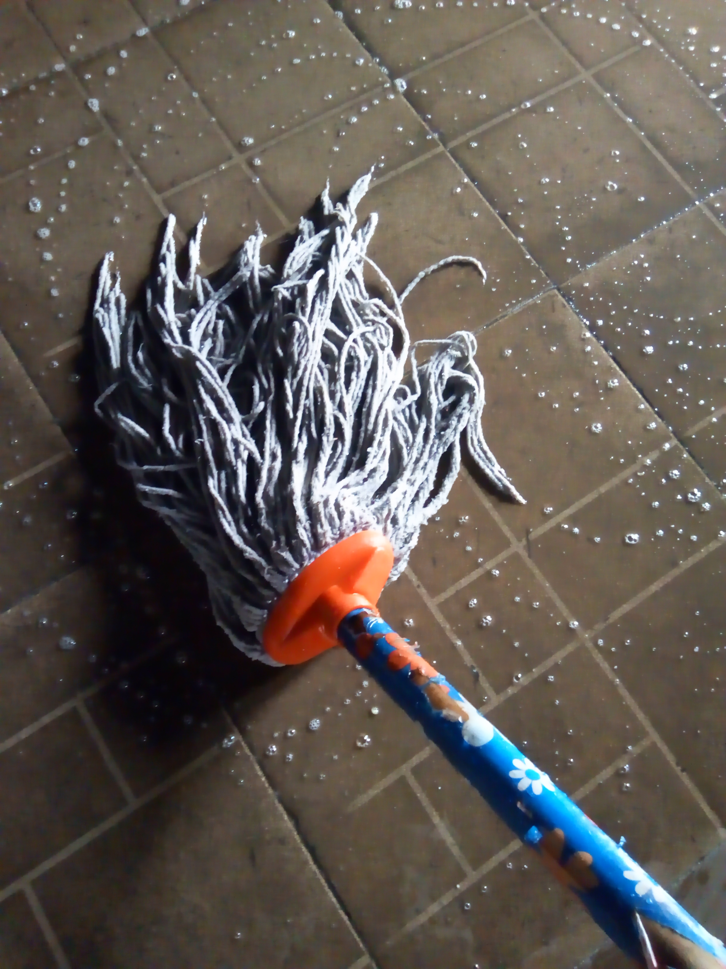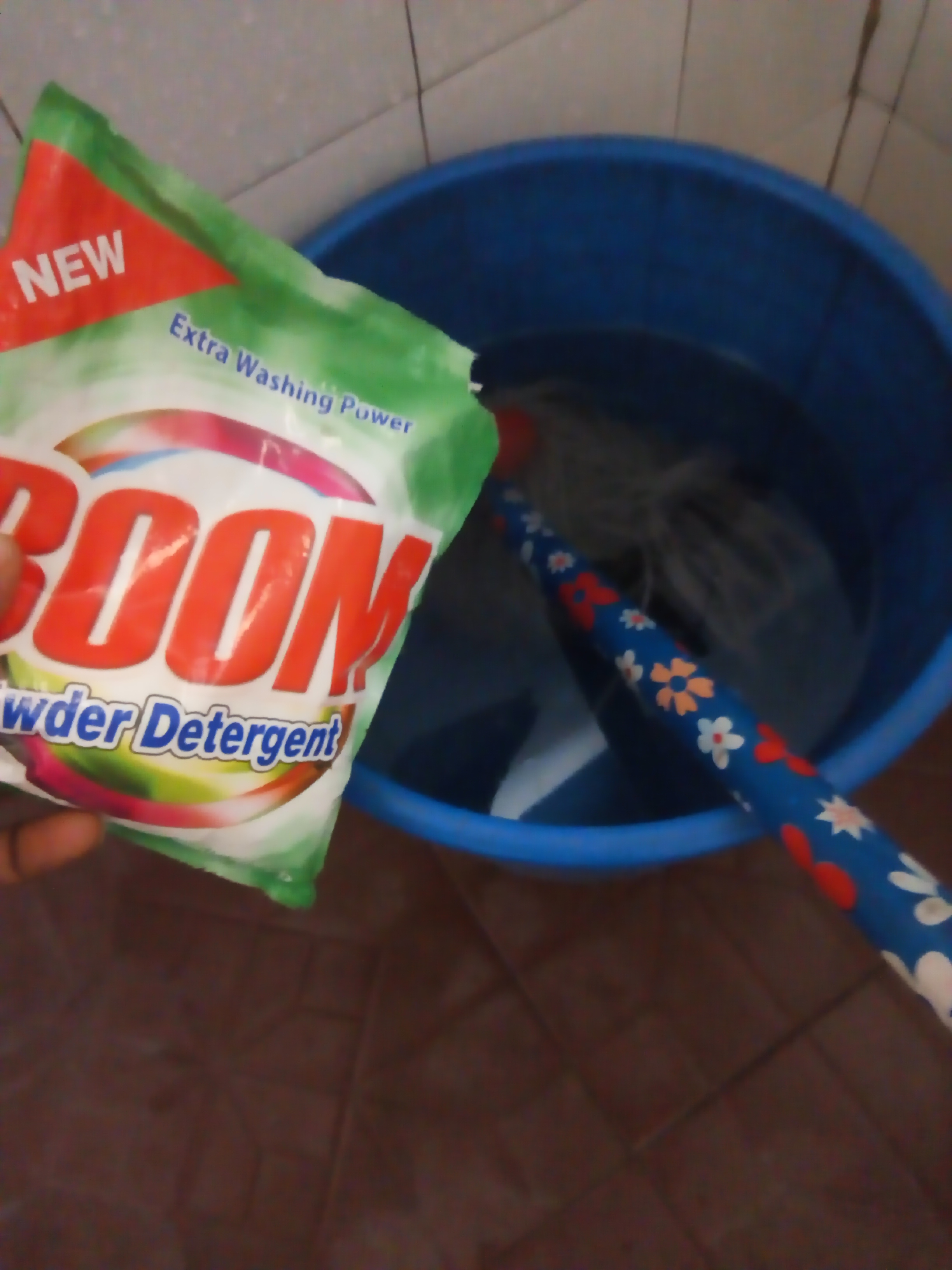 So after that I took a bucket of water with detergent and a mop to clean the house after sweeping it. We live in a three bedroom flat with a sitting room and kitchen including the two balconies so I decided to start with the rooms first after cleaning the the three rooms I cleaned the sitting room changed the water and then cleaned the kitchen and the balconies by then it was already 11:52 am.