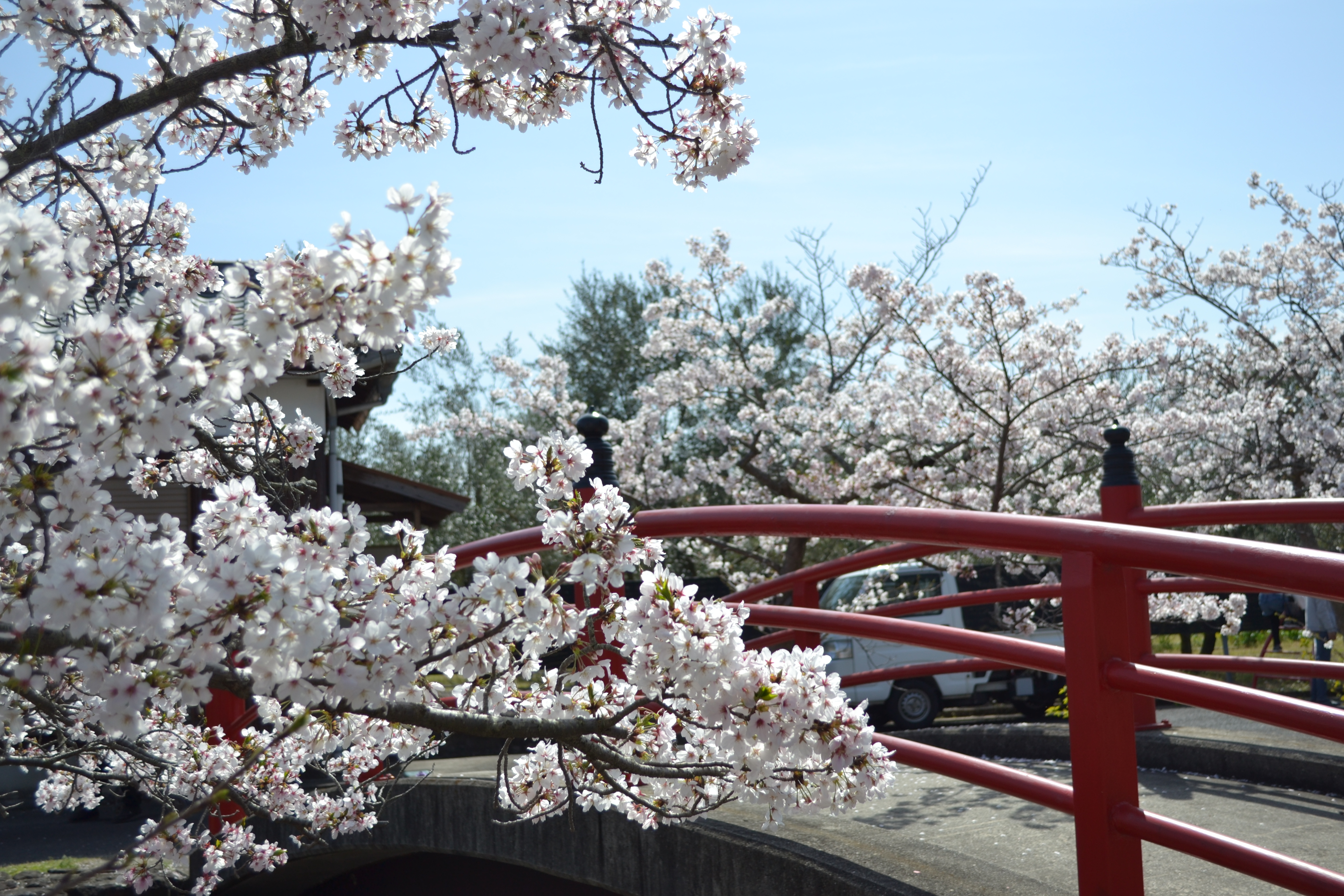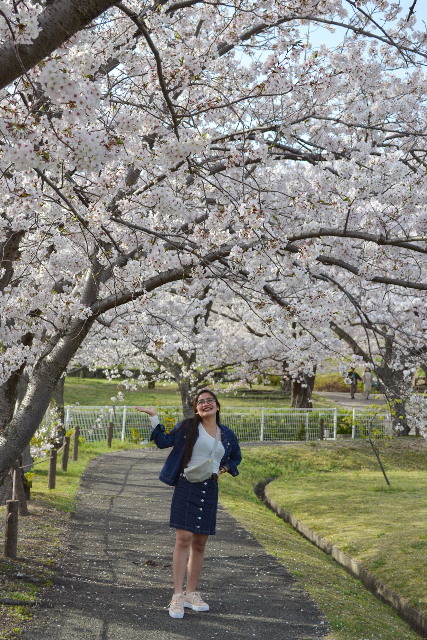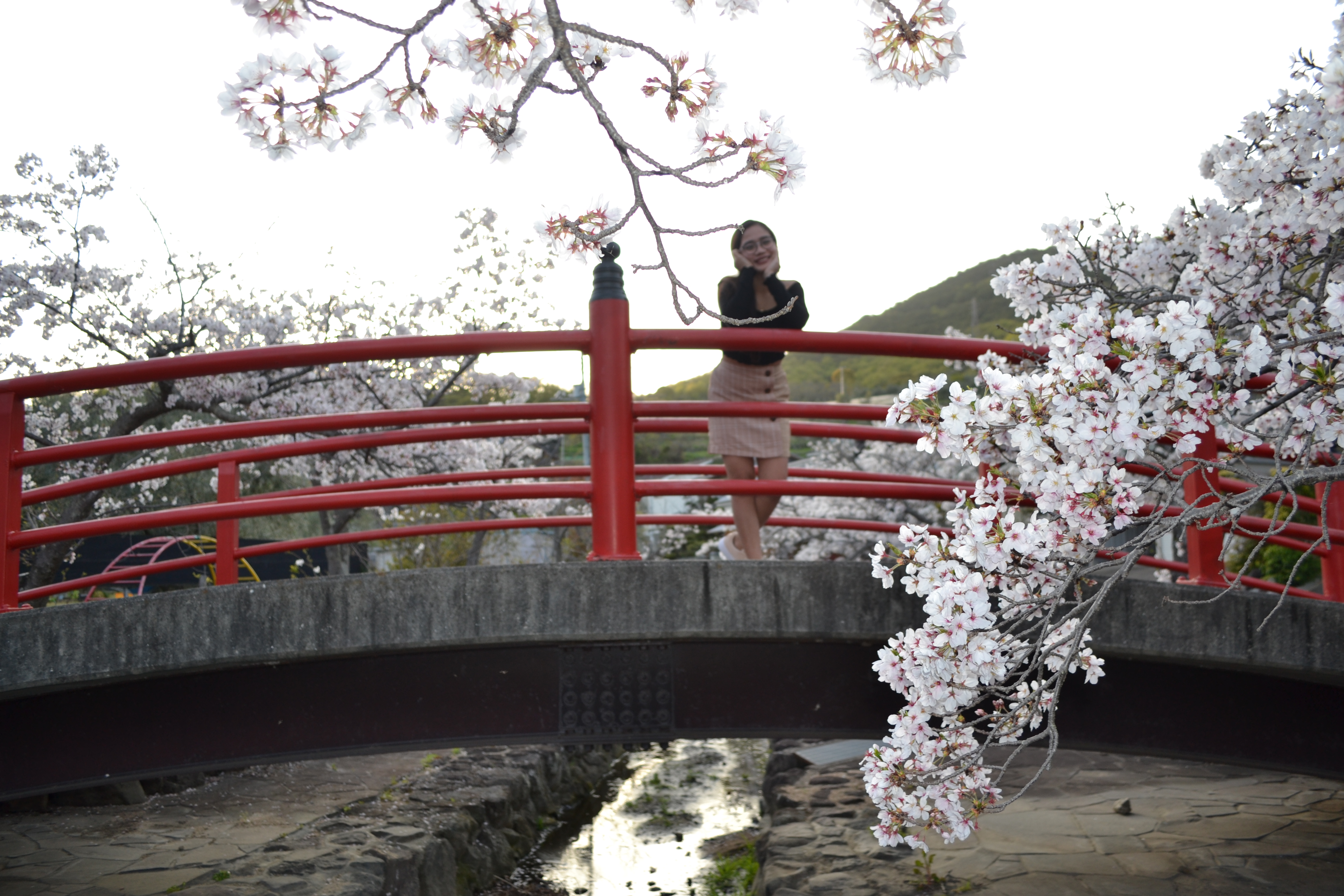 Next spot, In this place it follows a canal that’s lined with cherry blossom trees. After blooming, the passage is bursting with color with the red bridge. Those two elements standing along the bridge pathway is insanely beautiful!