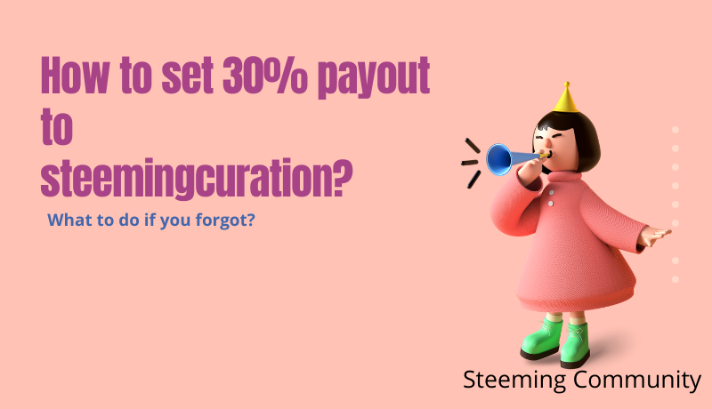 How to set 30% payout to steemingcuration?