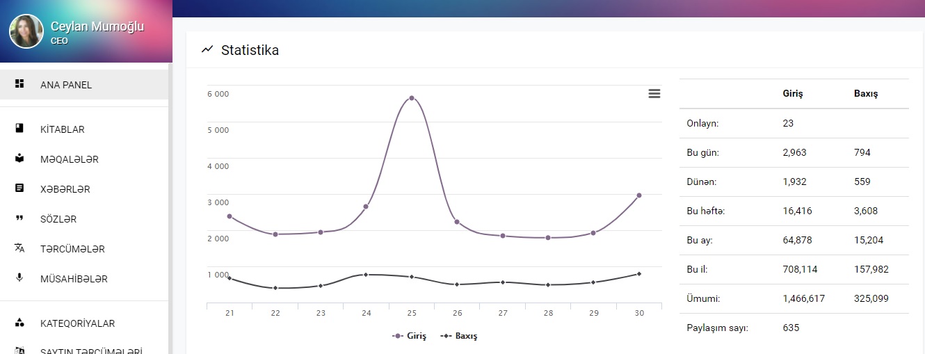 Hazırda saytda 636 xəbər paylaşılıb. Onların arasında kitablarla bağlı məlumatlar da var, resenziyalar, araşdırma məqalələr də, tərcümələr, müsahibələr də. Saytda qələm dostlarımın yeni şeir və hekayələri də yer alıb. Gənc və istedadlı şairimiz Firudin Həmidli yeni şeirlərini və tərcümələrini saytımızdan heç əskik etmədi. Özü də deyir ki, sizin saytın mənim yaradıcılıq həyatımda xüsusi yeri var. Bu cümləni duyduğumda çox sevinmişdim.