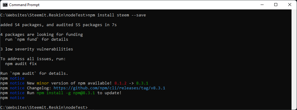 I was getting nowhere fast. 4 hours in and I could "get" all sorts but post nothing. Then @steemchiller got back to me - Hoorah! I didn't need to use node.js at all, I needed to link to a JavaScript library which contained all that I need (I just don't know how to use it yet) but it's party time - no need for node.js so I deleted all the crap I'd installed and made myself a sandwich. Oh, I also added the 1 line of code that I needed 🙄