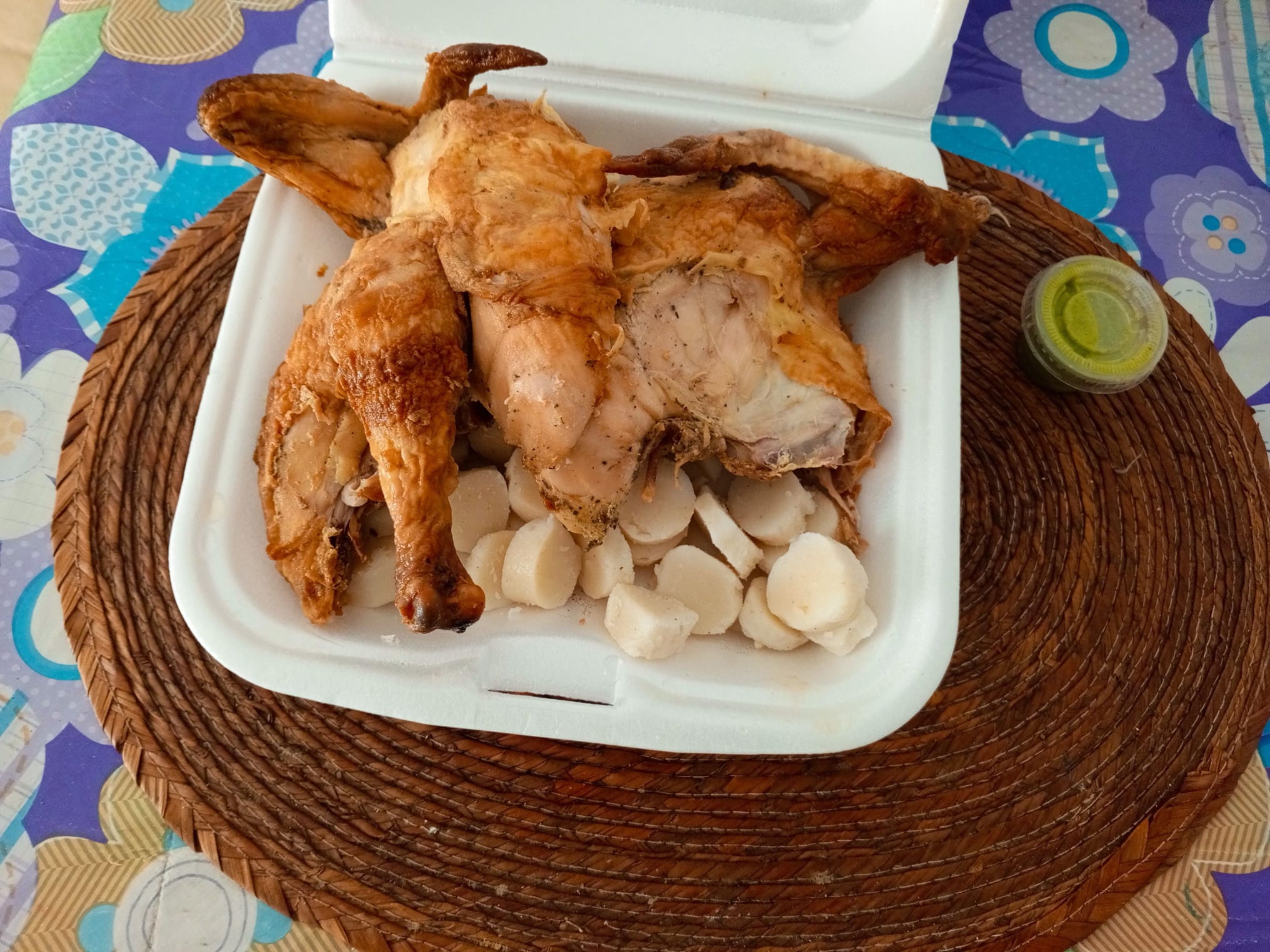 Para mi el contorno favorito para acompañar el pollo frito sería con papas fritas o también podría ser un puré de papas ,si es horneado combina muy bien con ocumo chino o yuca sancochada ahora si es guisado es una delicia acompañarlo con arroz y tajadas de plátano frito