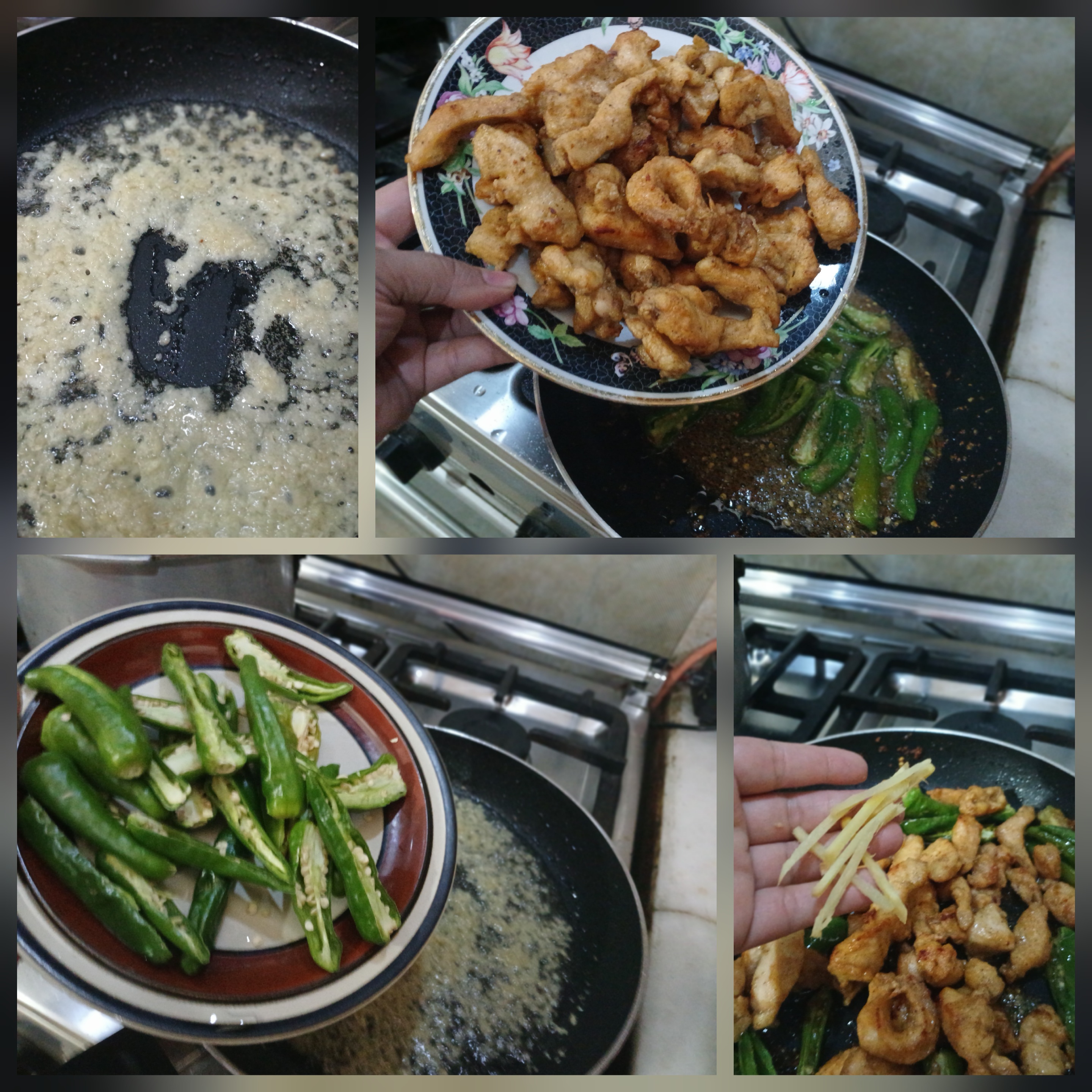 -Now add fried chicken,ginger & mix well.