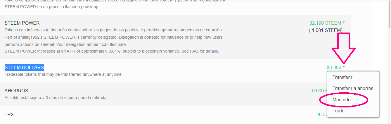 Entrar a monedero y hacer clic en la flechita de STEEM DOLLARS y luego Clic en MERCADO