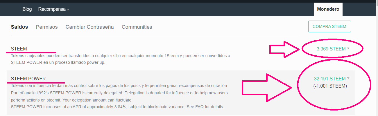 Regresamos a monedero y podemos observar que ya Tenemos STEEM disponible para hacer power up