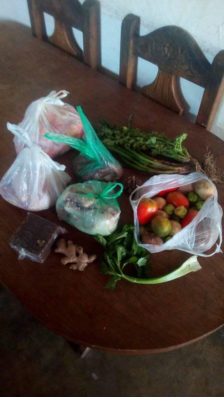 hoy temprano vendí unos SBD y salí a comprar algo de comida, camine como 500 metros a donde venden pollo y carne, y luego a la feria de hortalizas donde están unos gochos que venden a buen precio, procedí a comprar en estos lugares carne, pollo, aliños, verduras, y hortalizas y otro rubros para el hogar y el sustento alimenticio...